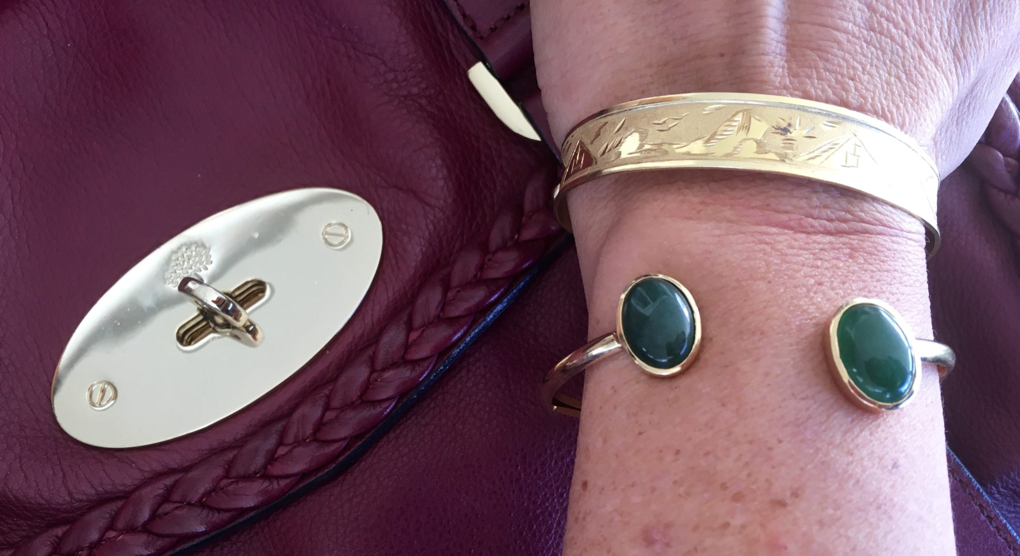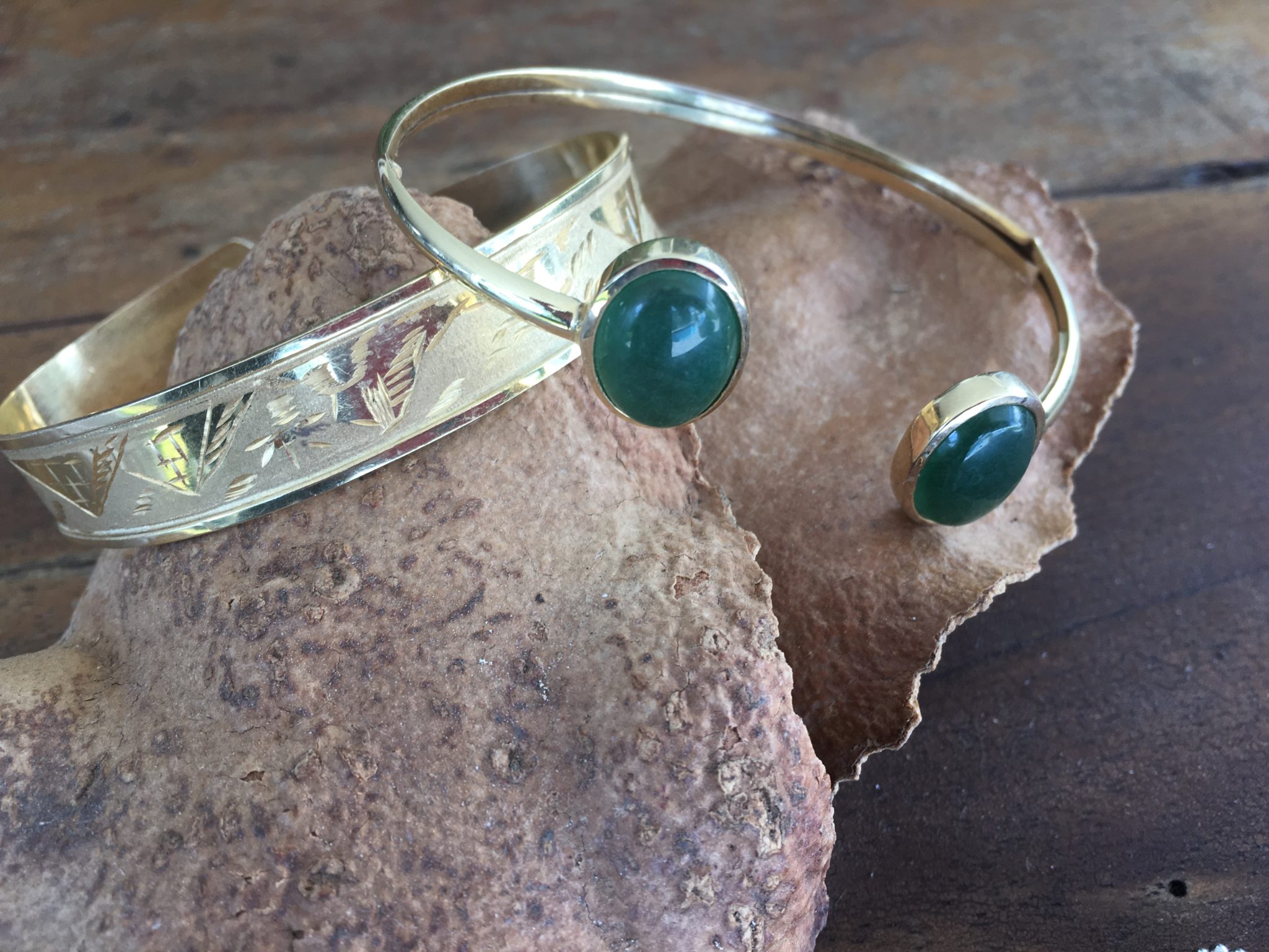 bracelete de ágata verde — 10 x 210,00 = 2100,00 / bracelete em ouro amarelo — 10 x 370,00 = 3700,00