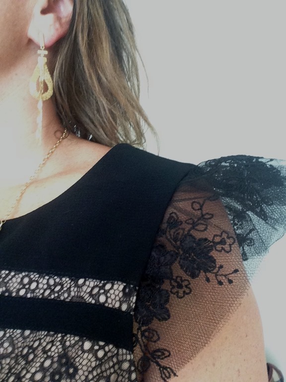 Mandei adaptar uma manguinha alta de renda e usei um colar lindo por cima – Voilà !