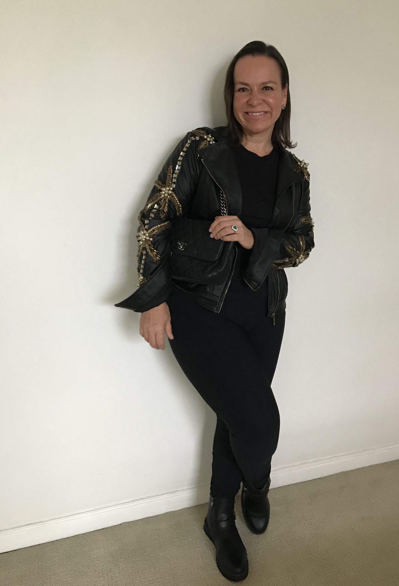 Quebrei ( ou compus?? ) a jaqueta “bapho” de linda de couro com esmeraldas. Que tal?