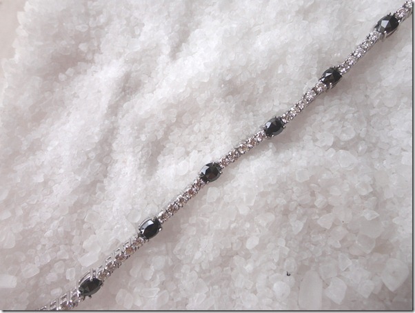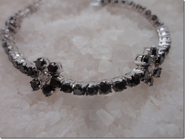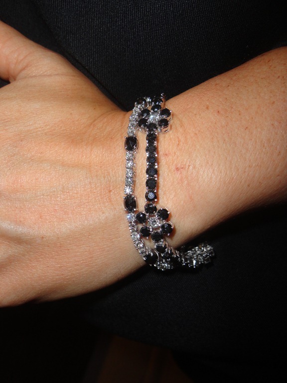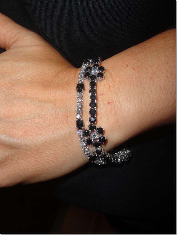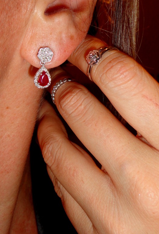 Para essa noite, usei brilhantes negros e um toque de vermelho nos rubis.