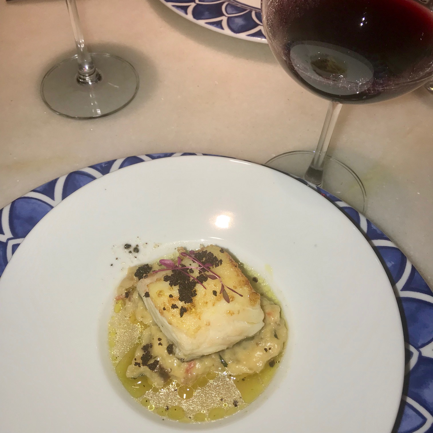 2 – Trilogia: rapa de arroz de pato, cabeça de xara, figo grelhado com presunto de porco bísaro – vinho: Esporão Reserva branco