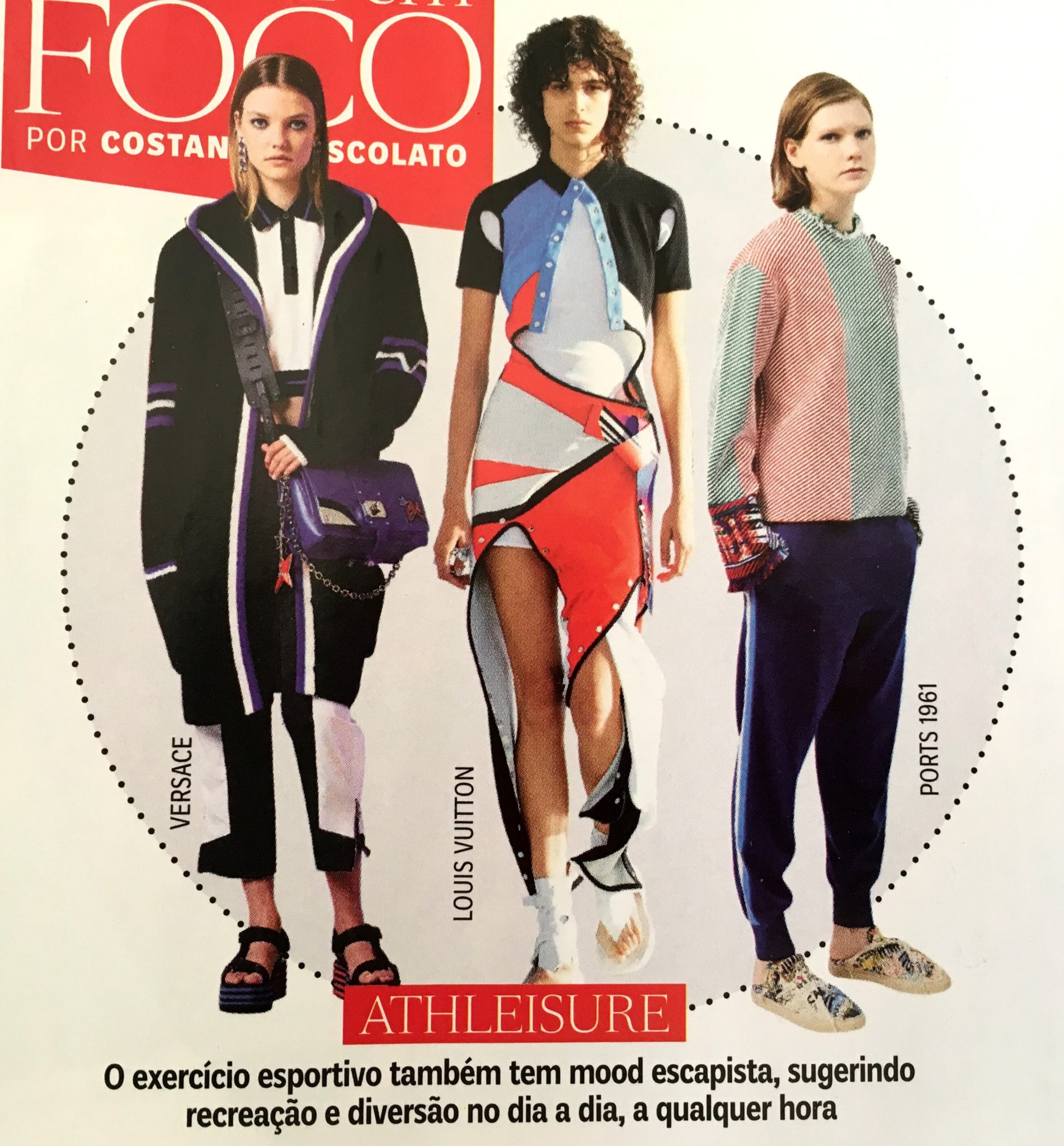 ” ATHLEISURE é a tendência de usar no dia-a-dia as roupas feitas para atividades esportivas ! Não só é uma atitude contemporânea , como também tem lá seu espírito escapista ao sugerir recreação no cotidiano. A moda então, se apropria desse costume, tornando-o tendência com modelagens originárias das academias e quadras. Repare nos detalhes como listras nas laterais de calças e shorts ou ainda de forma desconstruída, como fez a Louis Vuitton. Essas coleções Resort 2017, além do flerte com o escapismo, entraram de sola na era do instagram e redes sociais em geral, que privilegiam a linguagem extrovertida, ofuscante e extravagante de imagens fortes. ” ( Costanza Pascolato para Vogue Brasil )