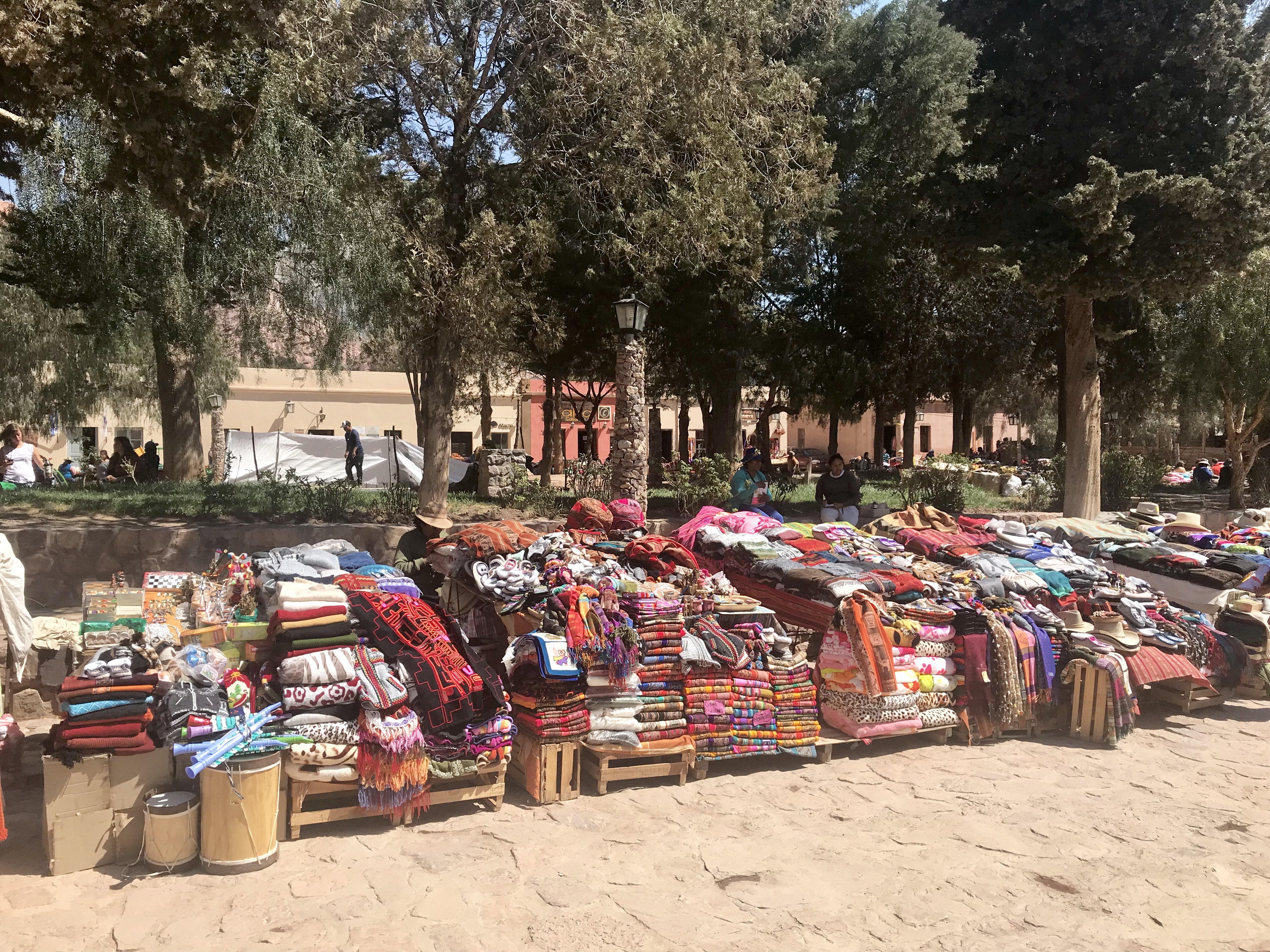 Mas voltemos a falar de Purmamarca: a cidade tem meia duzia de ruas e uma praça central, onde fica uma igreja da época da colonização espanhola. Na praça ocorre uma feira de artesanato permanente, que vende produtos andinos para as centenas de turistas que todos os dias desembarcam por ali.
