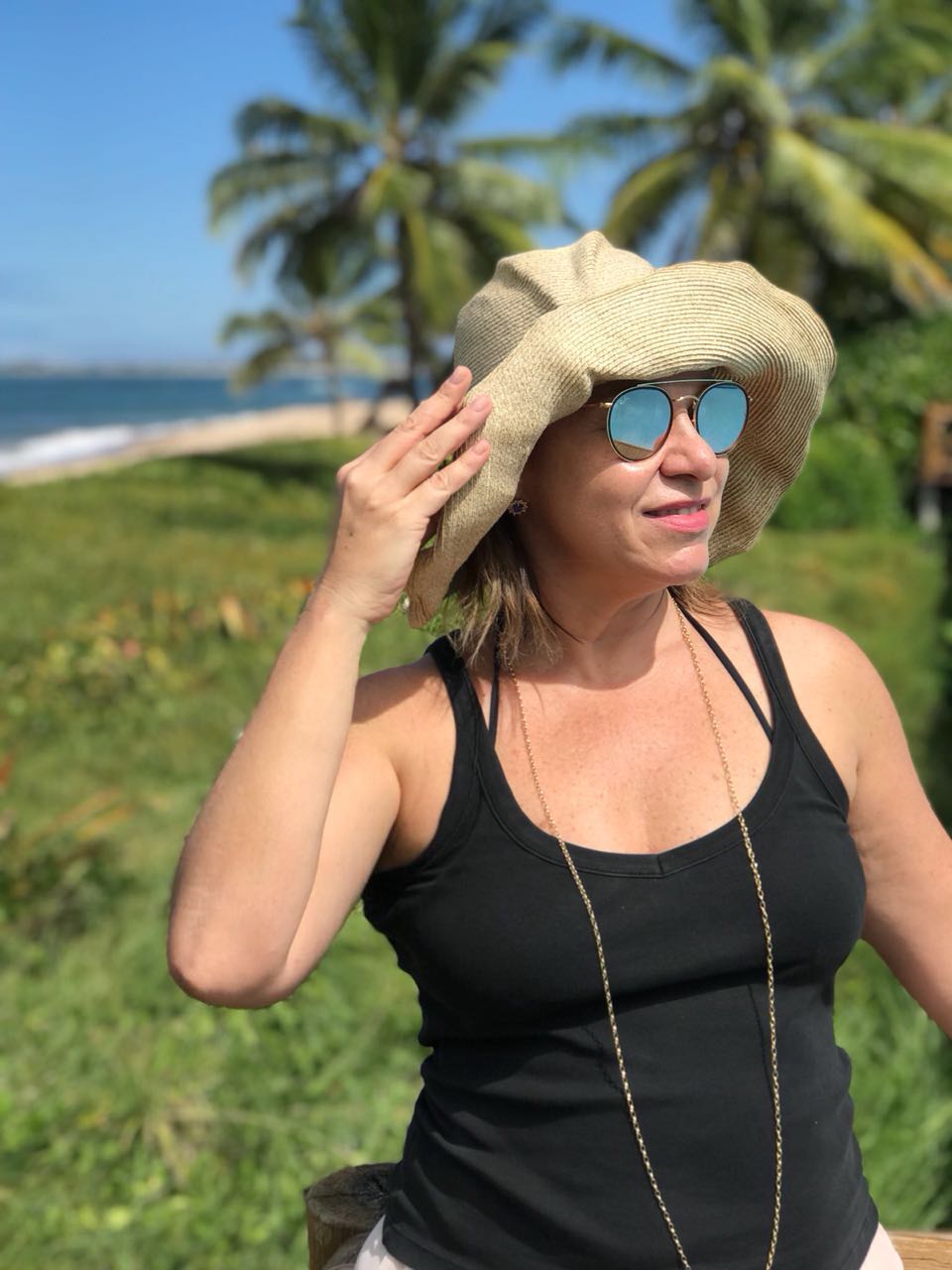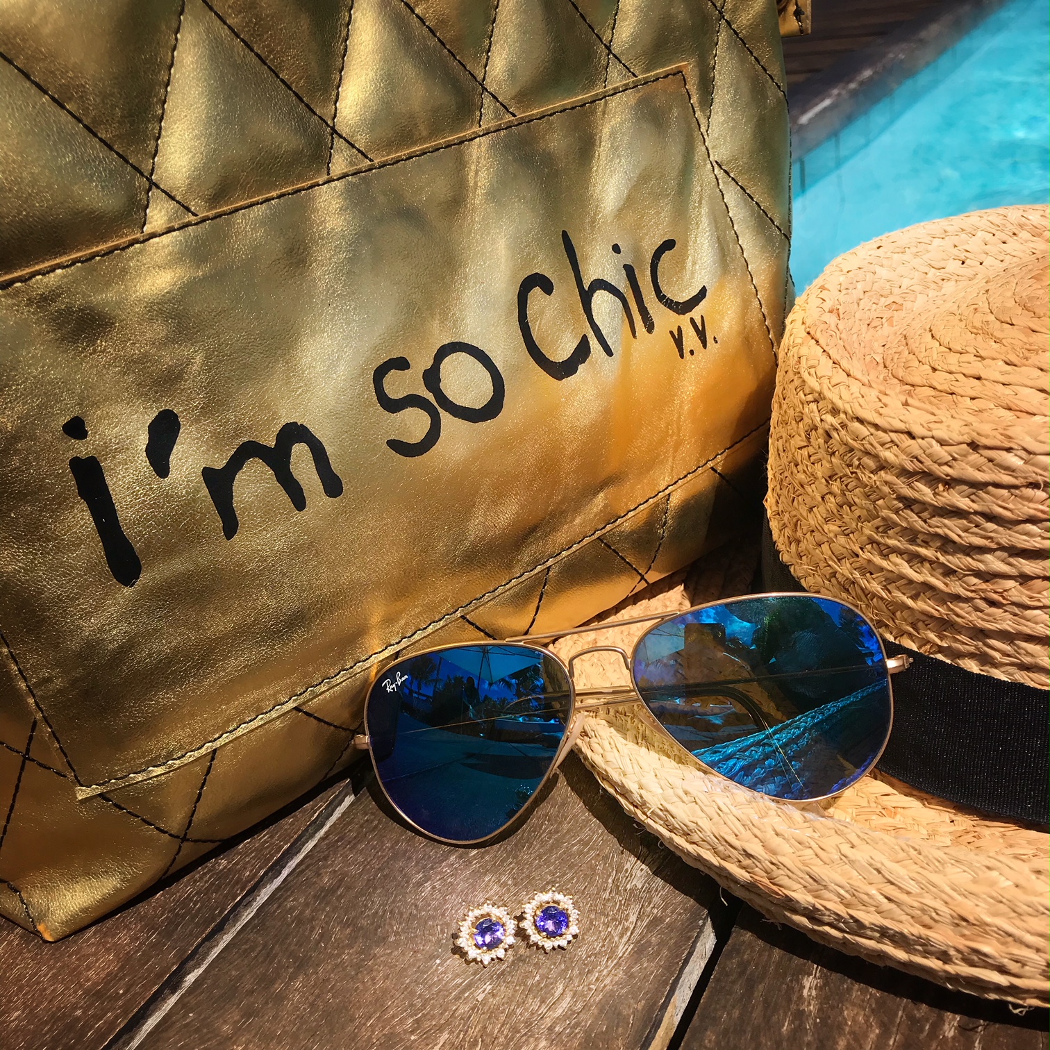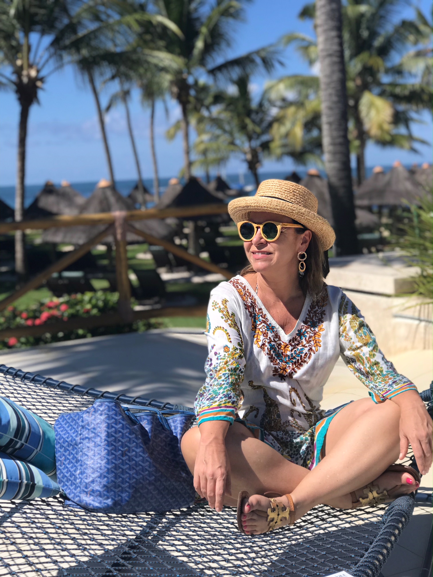 Mesmo brinco de tanzanita em outro dia de praia ; aliás, adoro usar azul no mar!