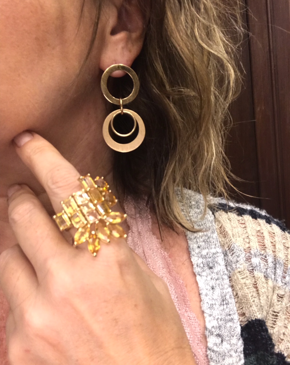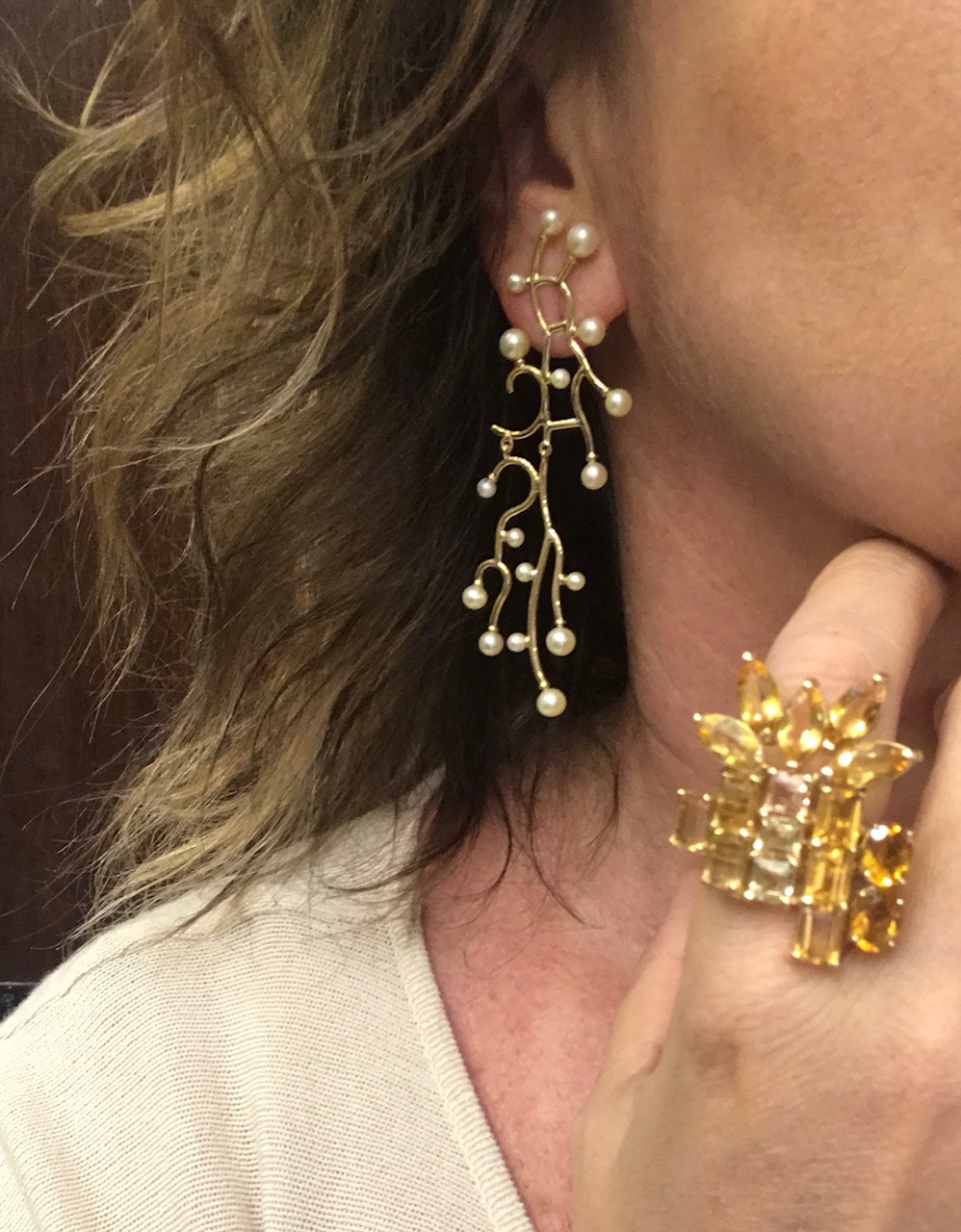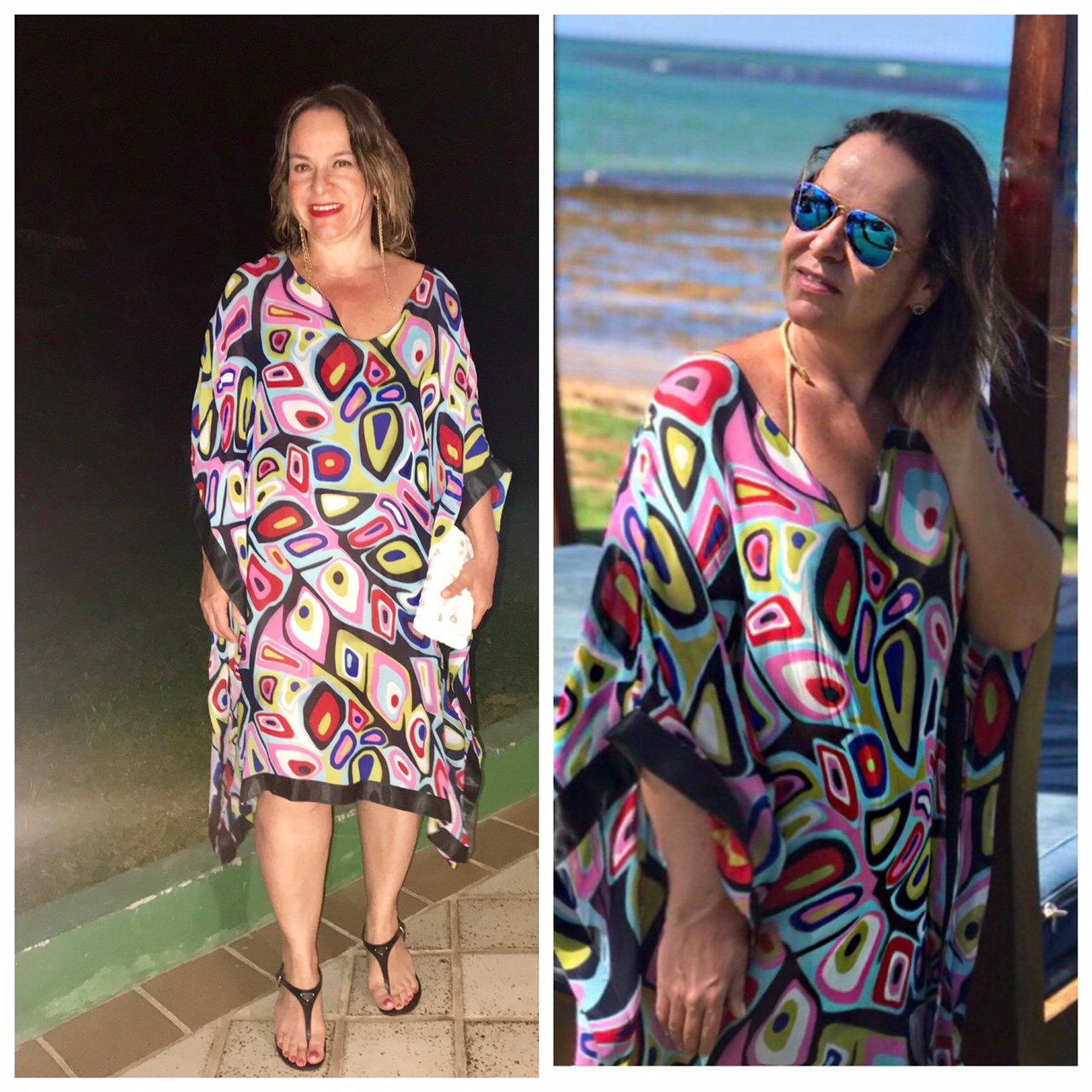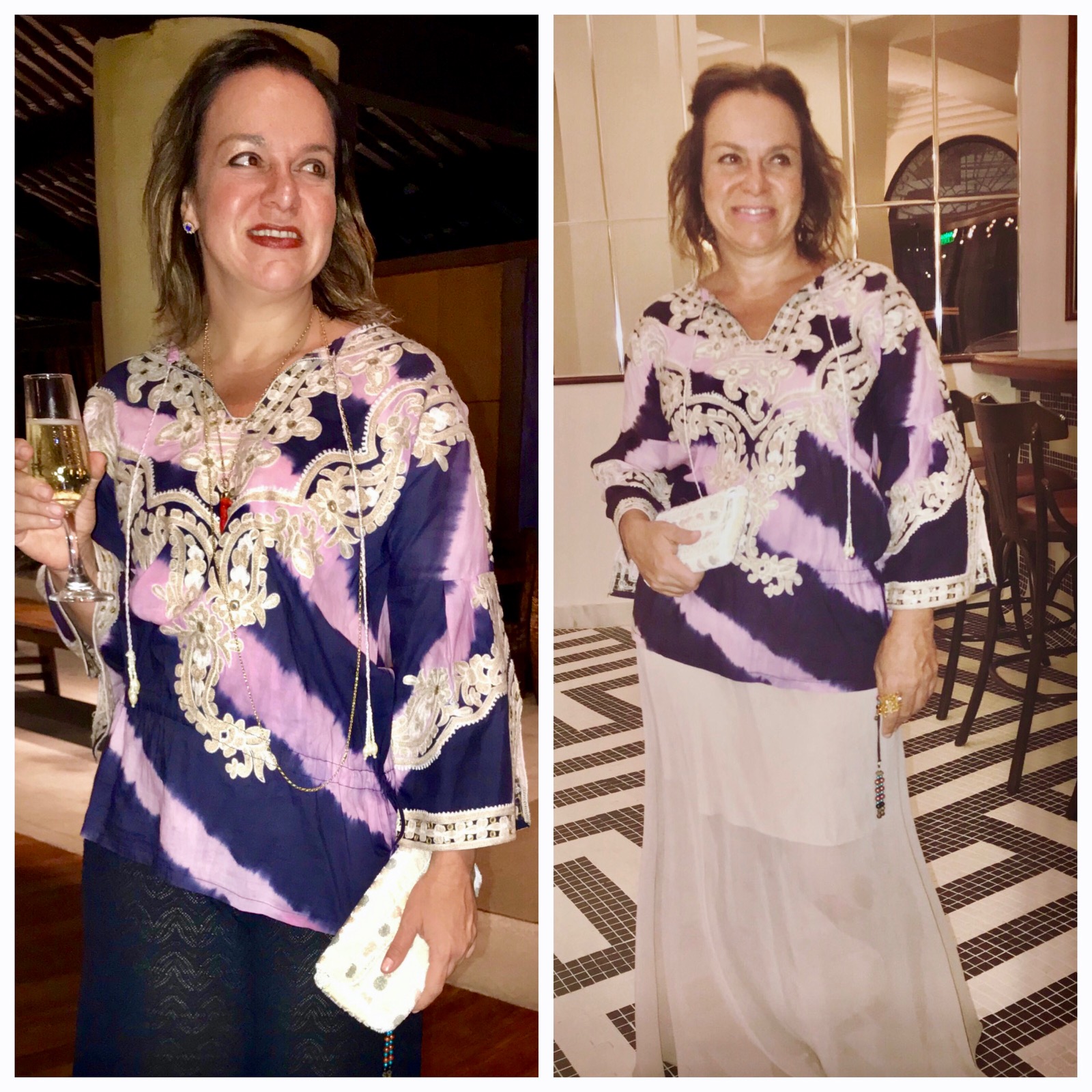 O mesmo Caftã foi usado em uma noite, com o mesmo brinco de tanzanita, inclusive. Mas dessa vez, adaptei as correntes que estava usando direto nas tarrachas e obtive um brinco com tamanhos diferentes.