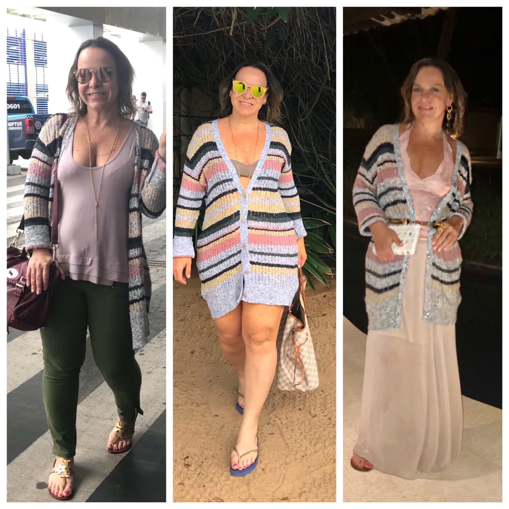Esse foi o meu aerolook e como sempre faço, repeti as peças em outras situações, otimizando a mala. O clima era 26 a 27 graus de dia, e na faixa de 22 à noite. Um tricô ou uma pashmina bastam. Clima ótimo, sem excessos.