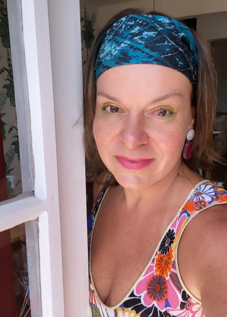 Usei na praia esse lenço bem colorido , como mostrei nesse post MALA DE PRAIA .