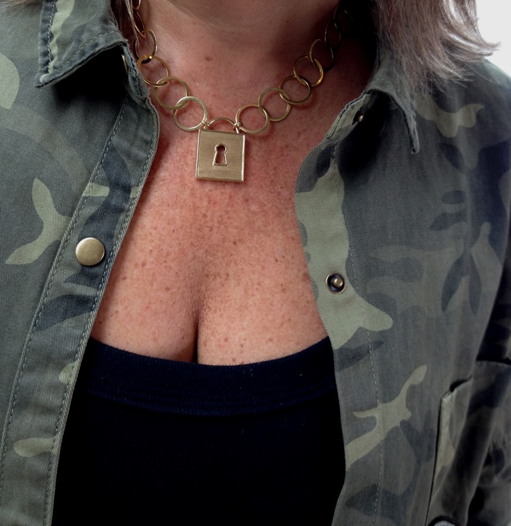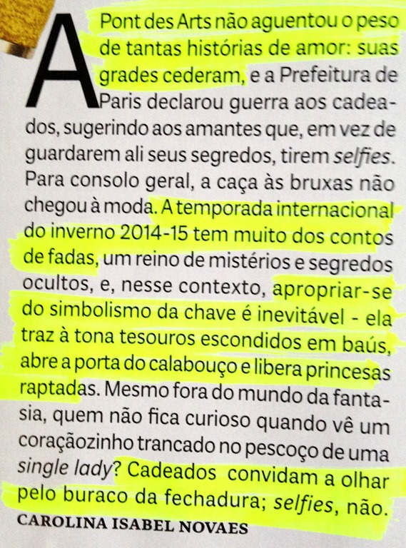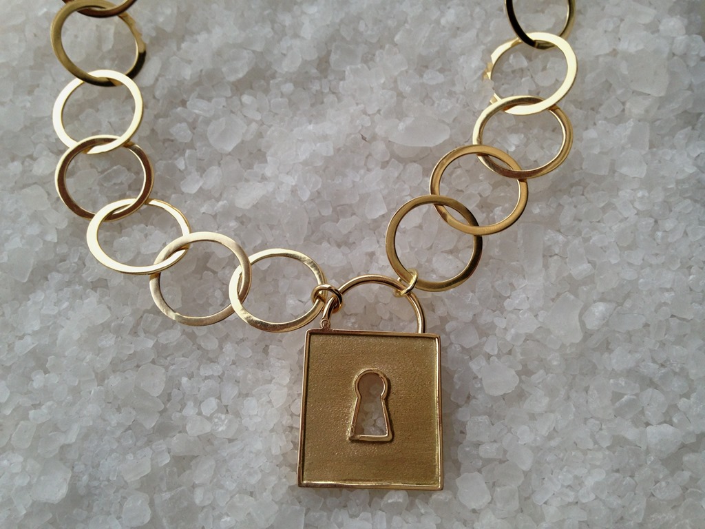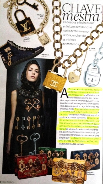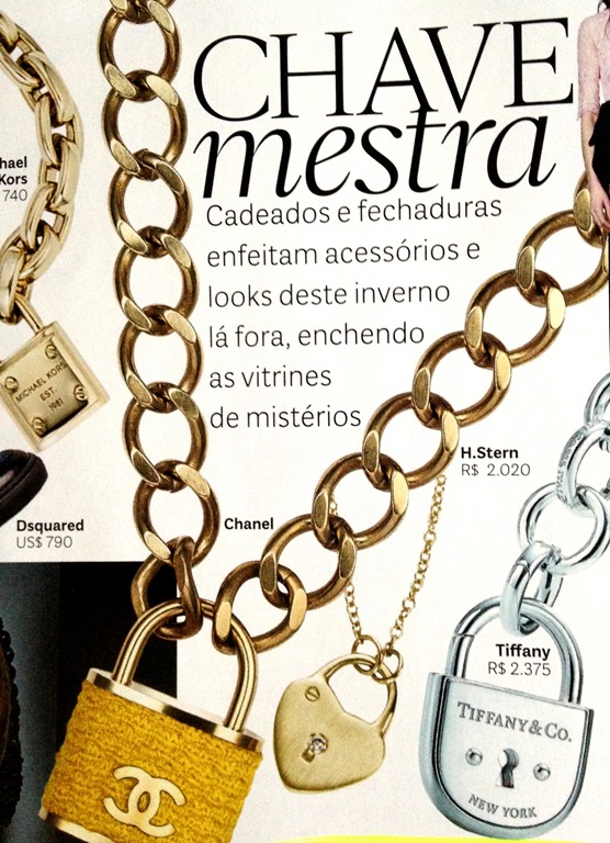 Esse colar cadeado está ultra na moda: a VOGUE outubro fez matéria legal sobre! Nesse caso, o cadeado é uma acessório removível, e o colar pode ser usado apenas com os elos