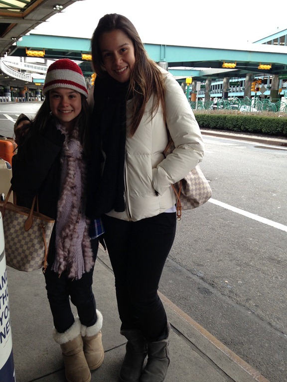 As meninas já se “ armaram com seus acessórios de frio “ assim que chegaram no hall do aeroporto mesmo! Mas pegamos um clima ótimo, entre 3 e 8o.