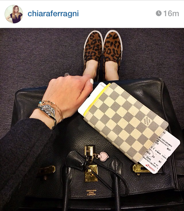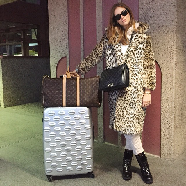 Eu, como faço sempre uma mala super enxuta, nunca levo uma roupa para aeroporto que não vá usar mais no local e que vá só entulhar a mala depois. Como saí no frio e chegaria no calor, optei apenas por um colete de pele para jogar em cima das roupas que eu usaria nos próximos 12 dias.