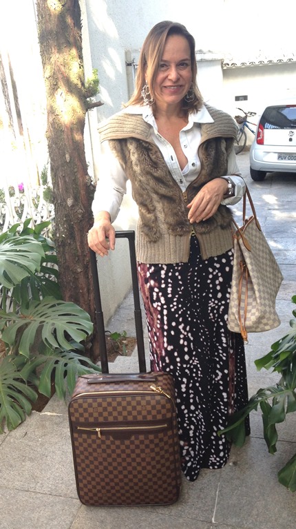 E na viagem de volta ontem repeti o mesmo colete em cima de roupas que já tinha usado na viagem. Assim, multiplico a mala sem tantos transtornos de bagagens imensas e dificeis demais de fazer e desfazer.