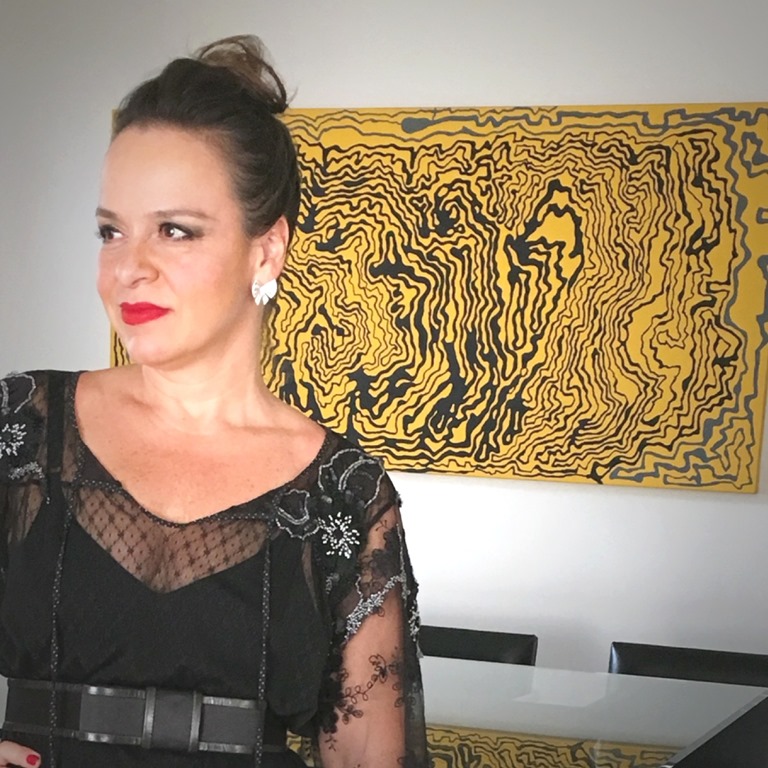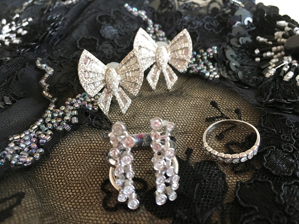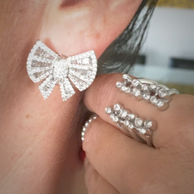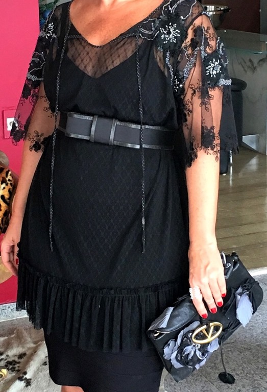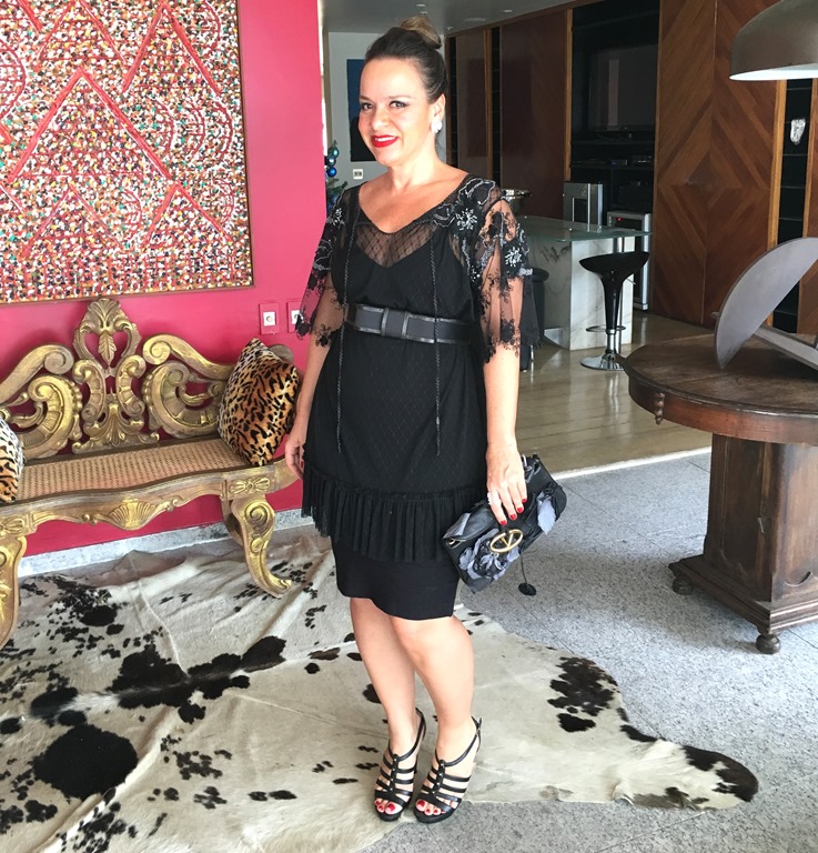 Escolhi um look all black com detalhes bem femininos – bordados, flores , rendas – e completei com brilhantes em ouro branco.