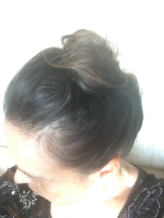 5) finalizo com spray altissima fixação de toque seco. Puxo uns fios aqui e acolá e mais spray.