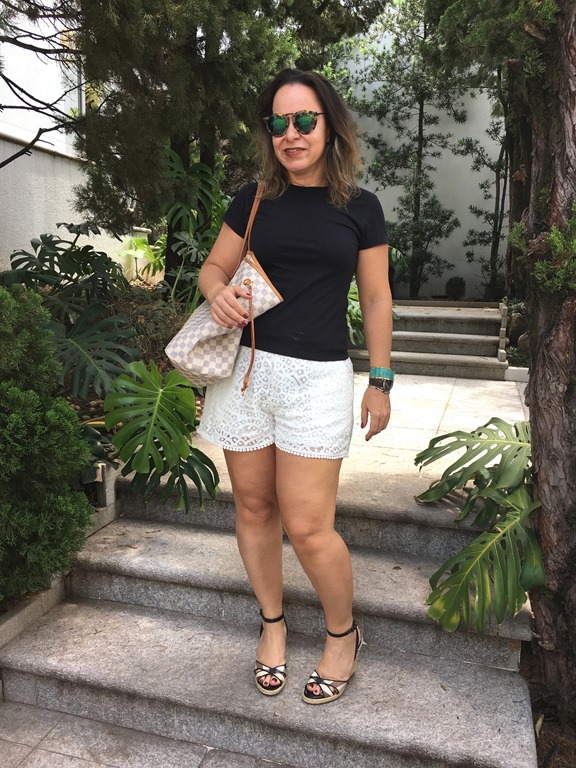 Detesto shorts – acho que só tenho 3! – mas esse modelo de renda, larguinho, achei uma graça! É da H&M Miami – top HERING – bag LOUIS VUITTON – espadrilles BURBERRY