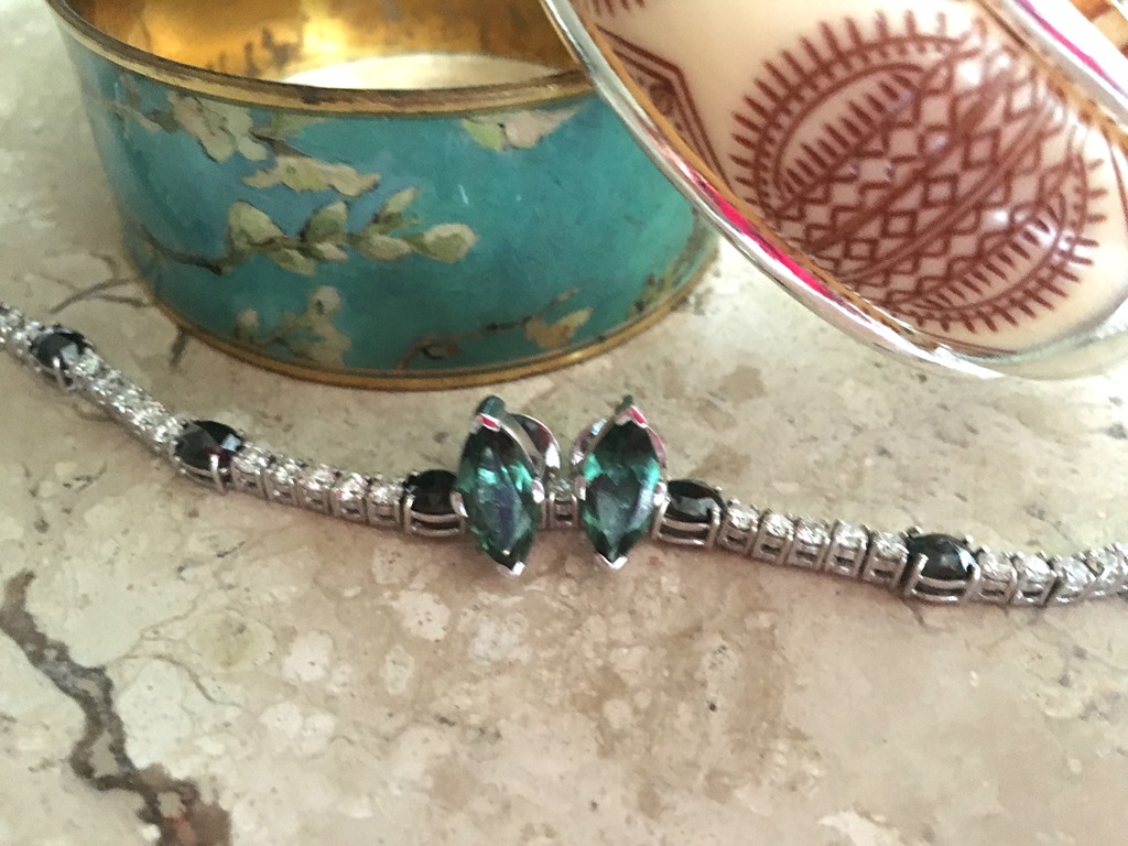 Riviera de brilhantes e brinco navete de turmalina JÓIAS PD
