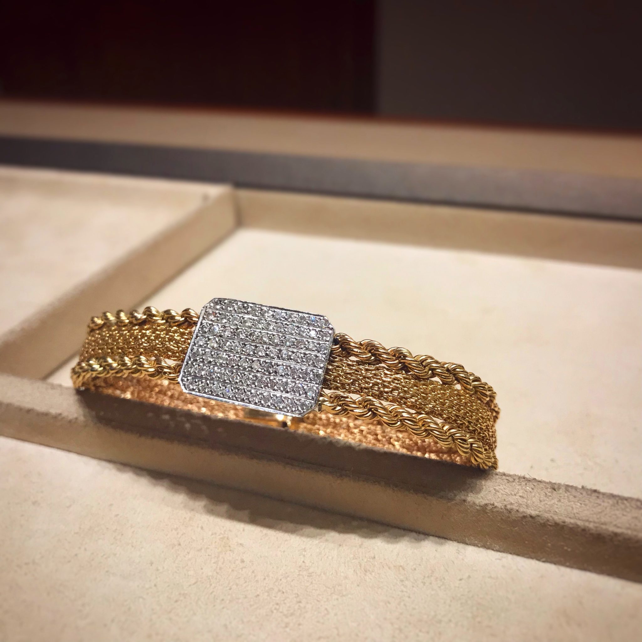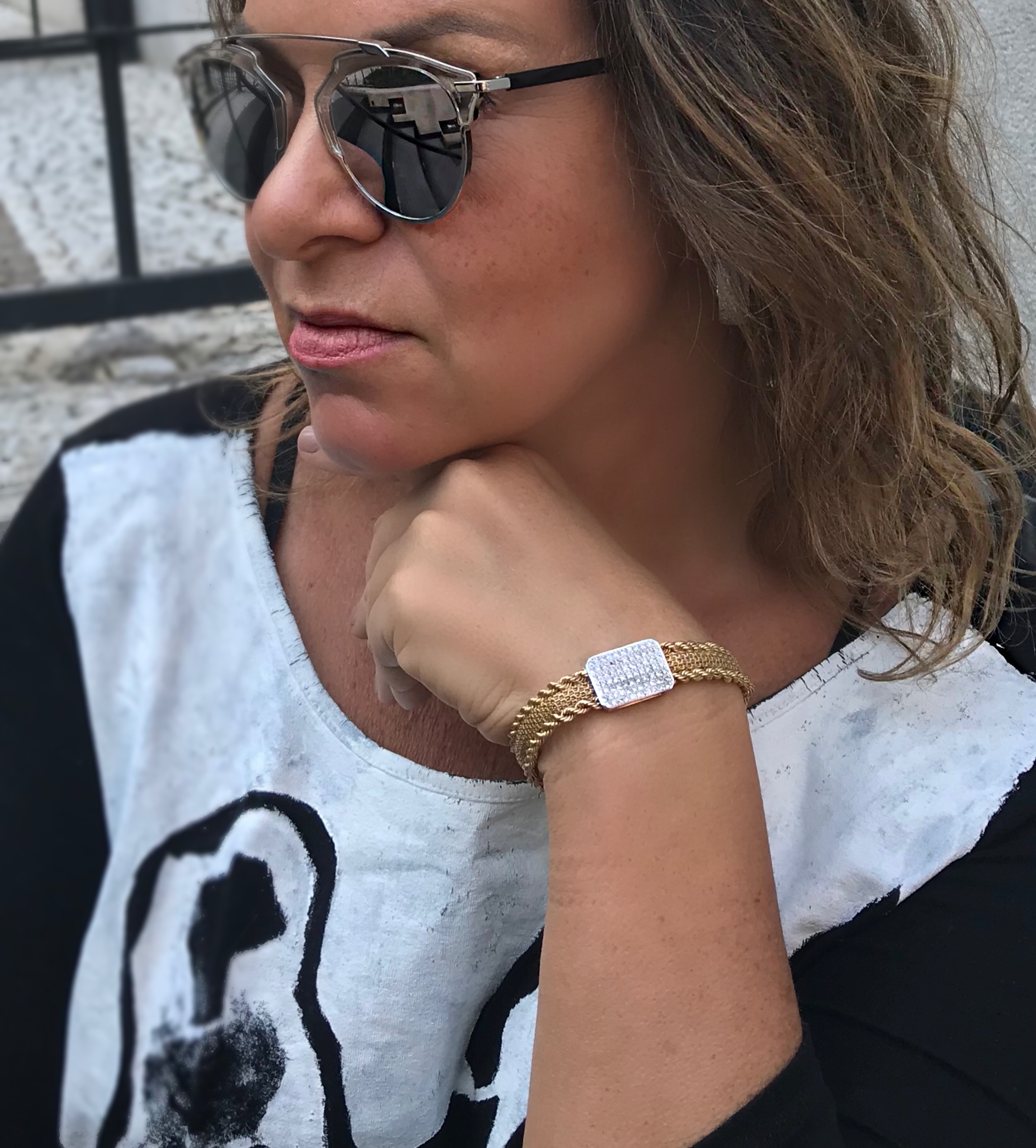 Bracelete em ouro amarelo e brilhantes + argola de brilhantes JOIAS PD