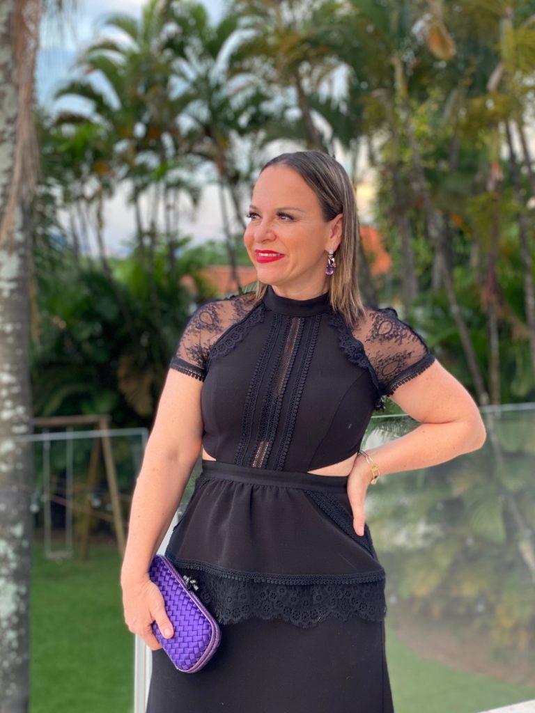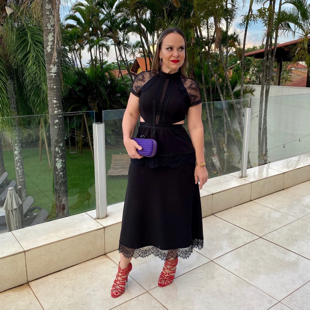 Na verdade, até é um pretinho básico, mas o que muda tudo mesmo é o acessório sempre. Dessa vez, ousei na make, com olho bem marcado e boca vermelha. Exatamente por isso, quis tirar toda a atenção do cabelo, deixando-o bem, lisinho e discreto.