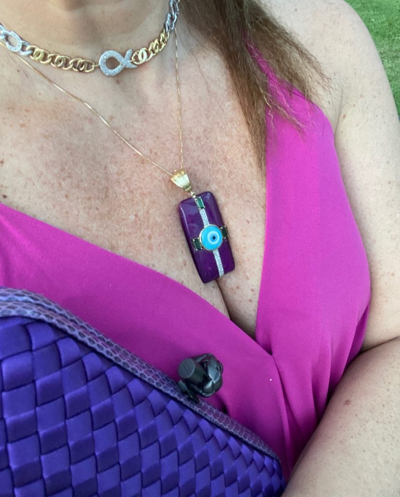 Trouxe o roxo da clutch para a make e o pingente e as outras peças em ouro amarelo não tinham muita informação.