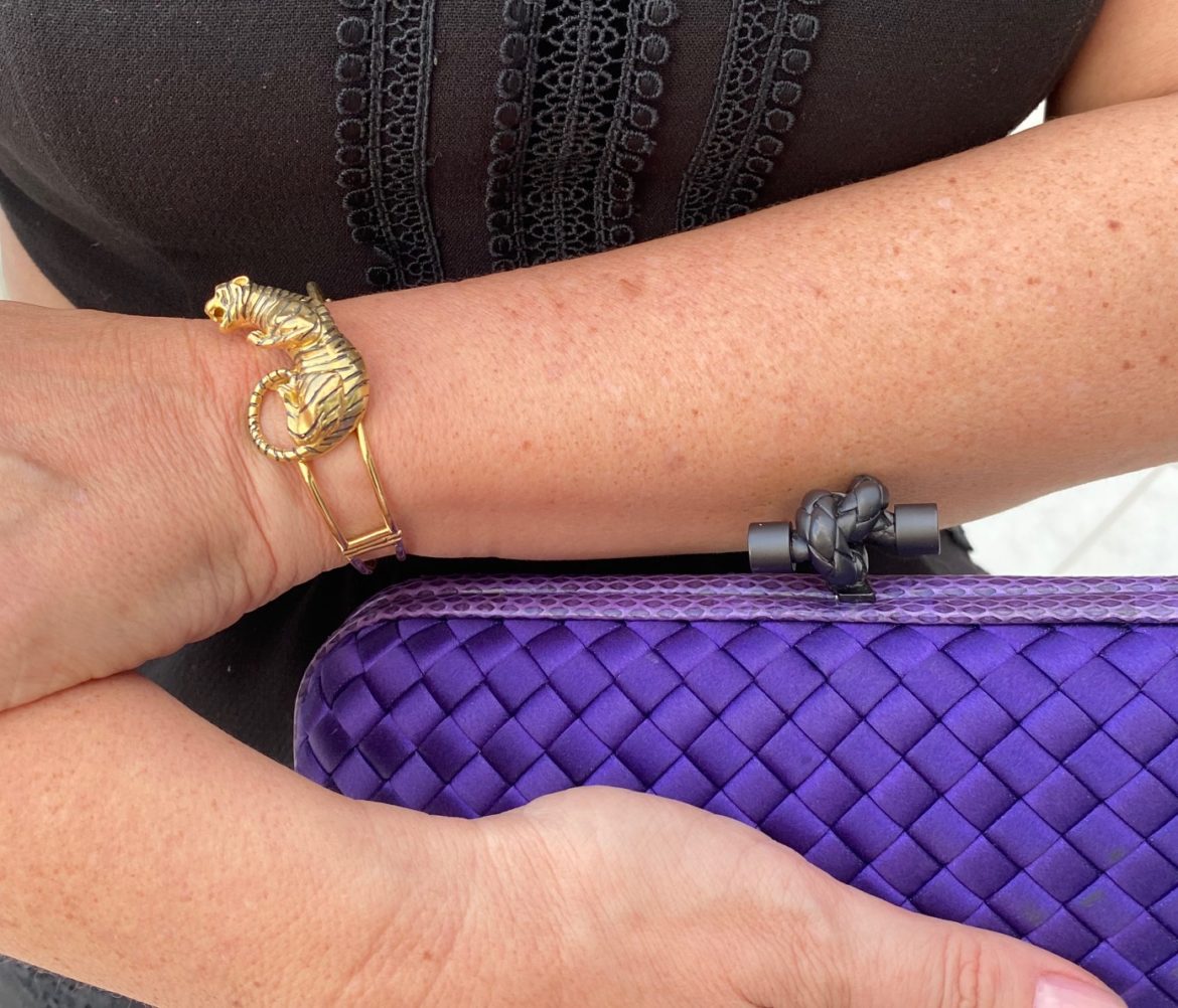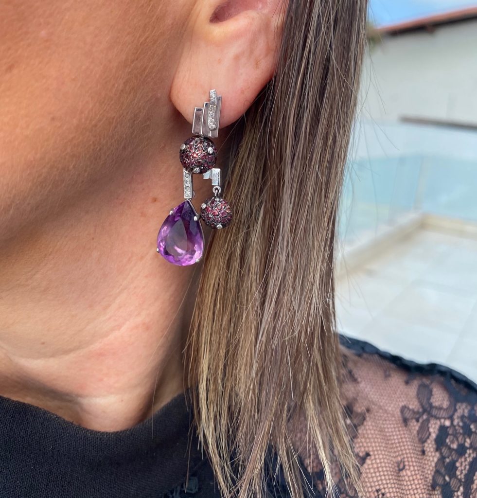 Trouxe o roxo da clutch BOTTEGA VENETA para o brinco, aliás, sempre gosto de repetir a cor em algum outro elemento.