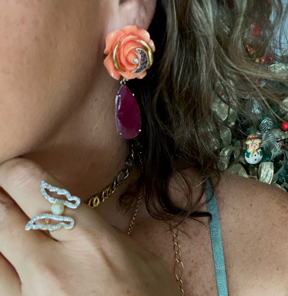 A festa seria dançante e por isso, uma abordagem mais casual. Escolhi poucas joias, a base em ouro amarelo.