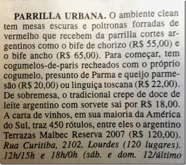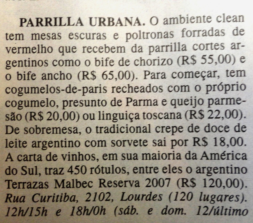 Em um dia de fim de semana no início do mês ,fomos com a familia no PARRILLA URBANA, para conhecer. Casa bonita, comida boa, uma boa alternativa de parrilla em Lourdes.