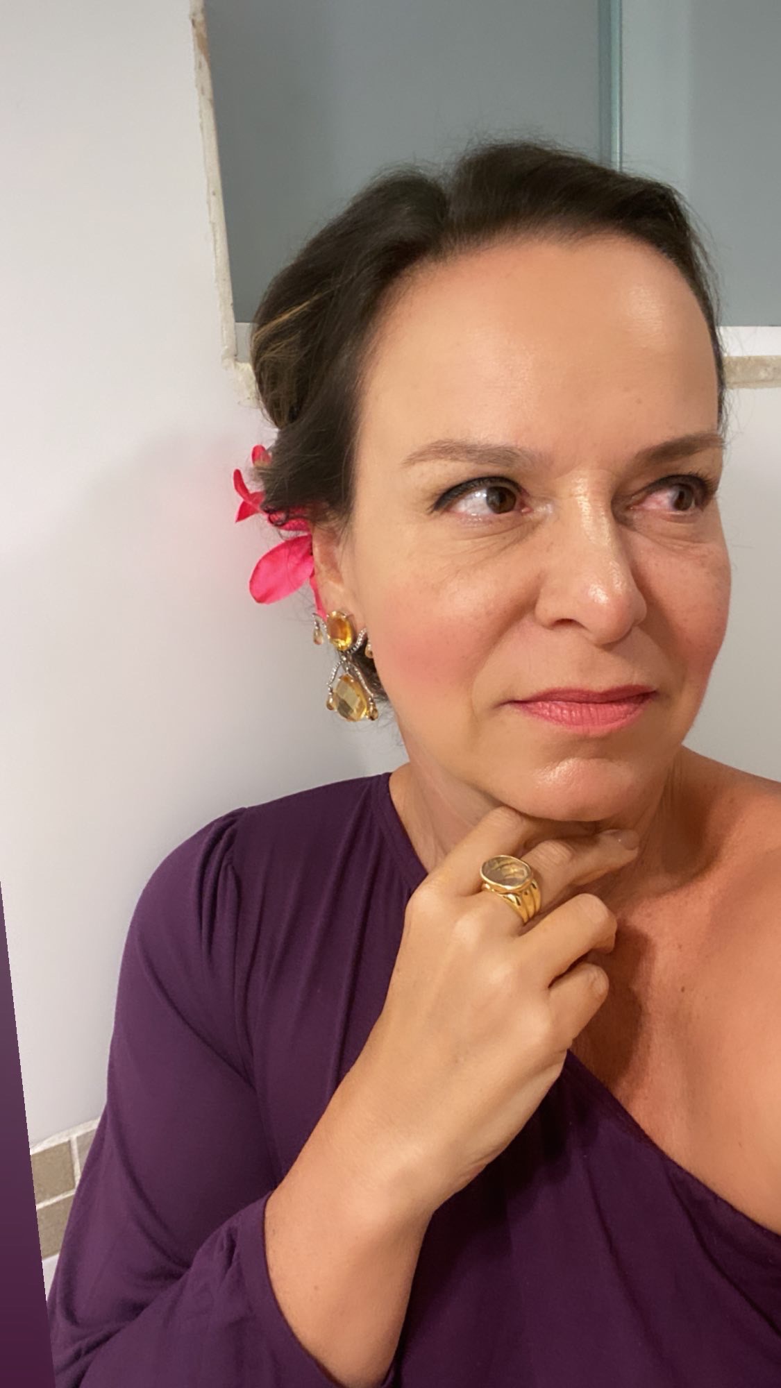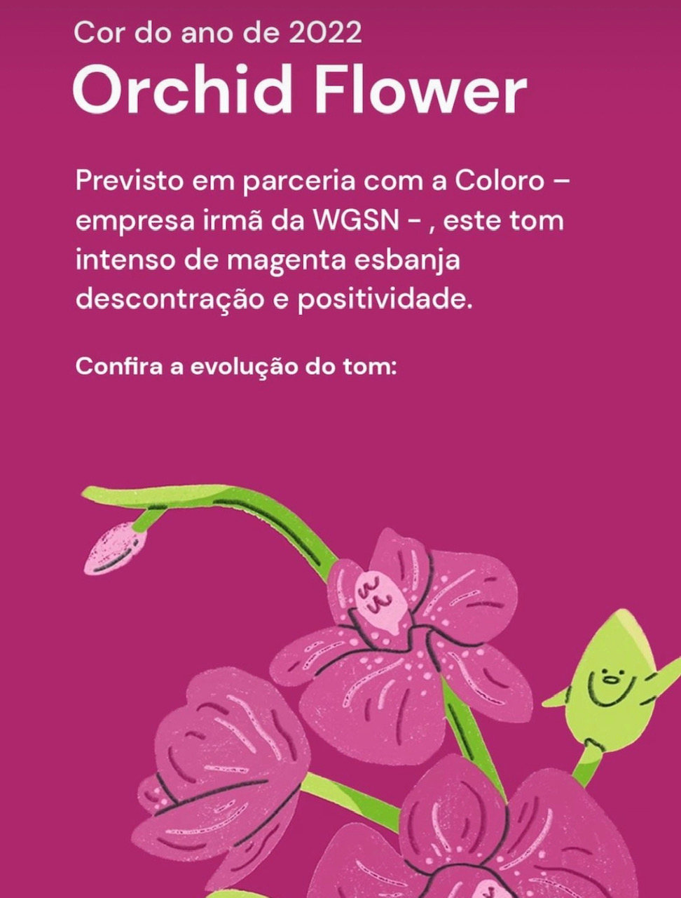 Aproveitei e já usei com a orquídea rosa no cabelo, numa outra leitura de cor da WGSN , que também transita entre o mix de vermelho + azul.