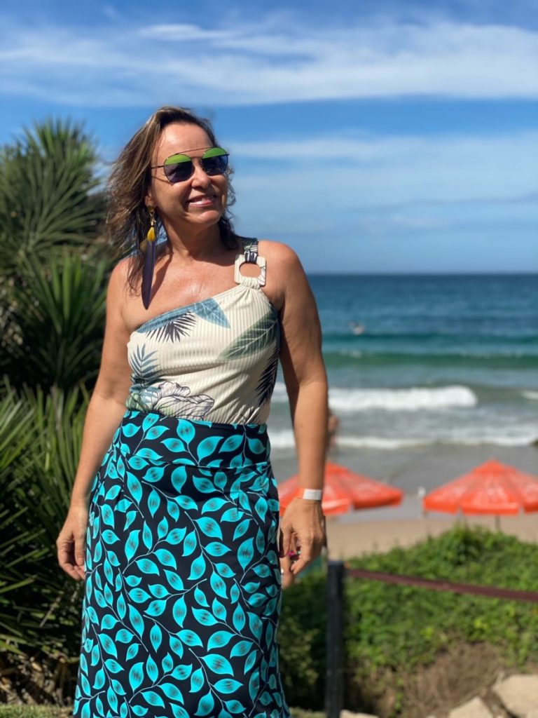 E adoro usar alguma peça de moda, como por exemplo, o maiô.Não tenho o hábito, pois como tomo pouco sol, evito ter marcas estranhas depois. Mas como seriam muitos dias, escolhi usá-lo em um dia menos ensolarado e já tinha usado à noite antes, como body.