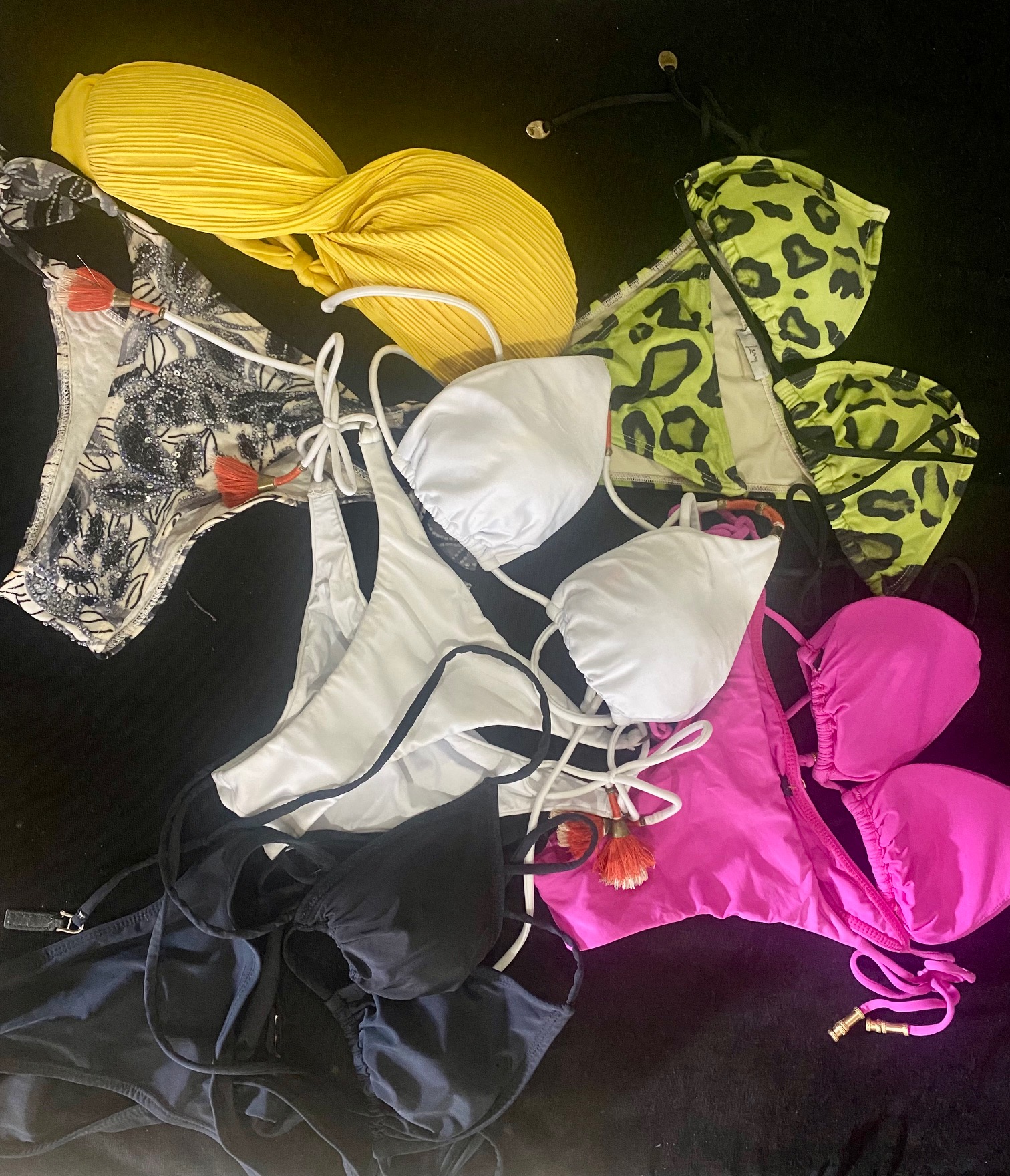 Mesmo os biquinis ficaram dentro da mesma cartela, já que uso uma mesma roupa à noite, e depois na praia, como saída.