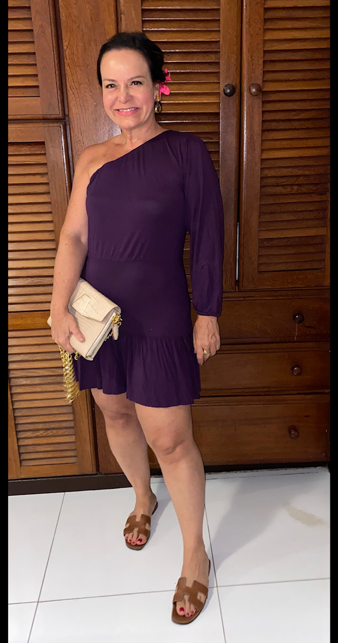 Levei um vestidinho branco bem simples e eu precisava de um look reveillon, já que decidimos de improviso ir a uma festa grande com show, DJ, etc..