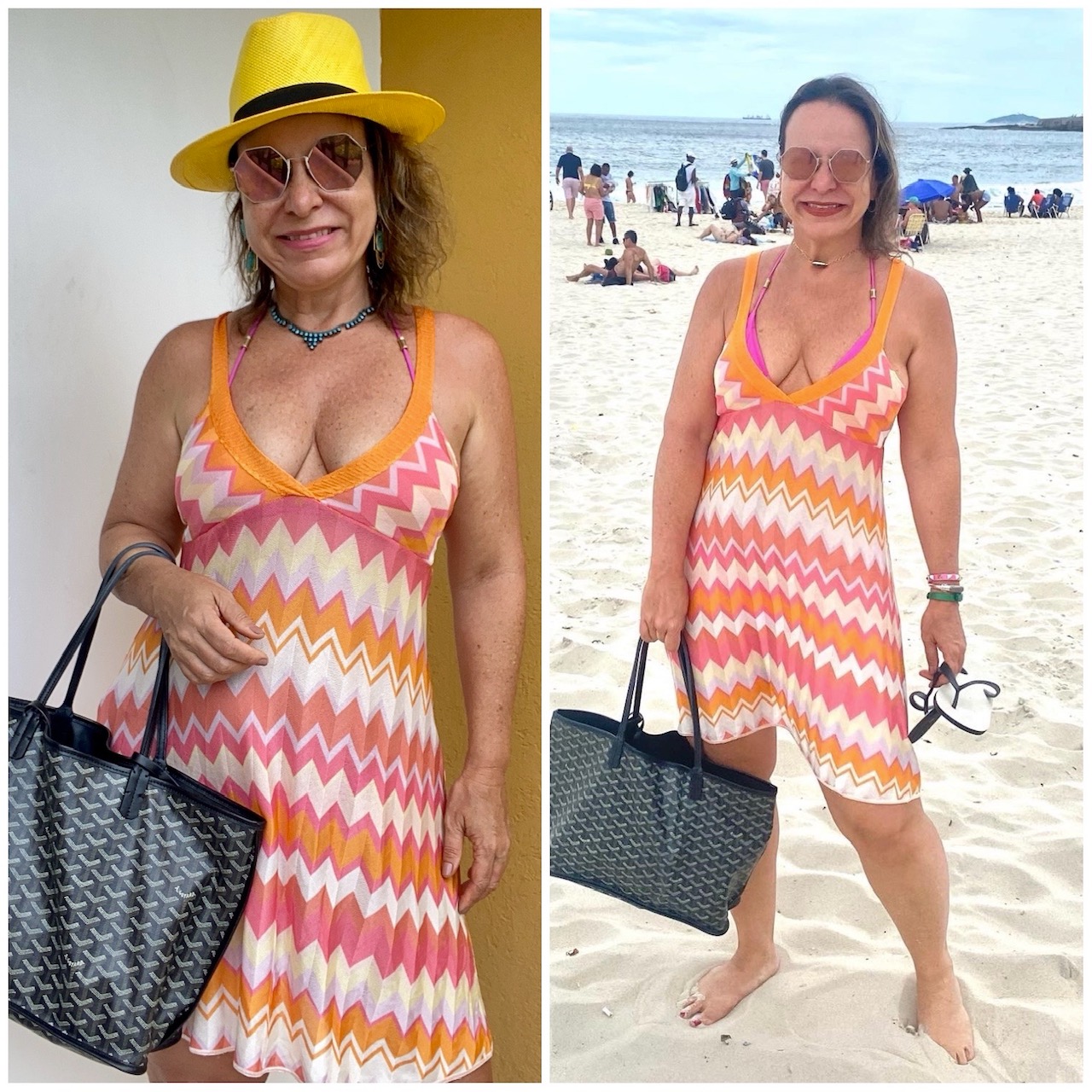 A única saída de praia verdadeiramente falando foi essa Missoni, que usei com joias diferentes ( sim! Uso joia na praia ! ) e com o charme do chapeuzinho amarelo que dá uma colorida no look com cara de verão.