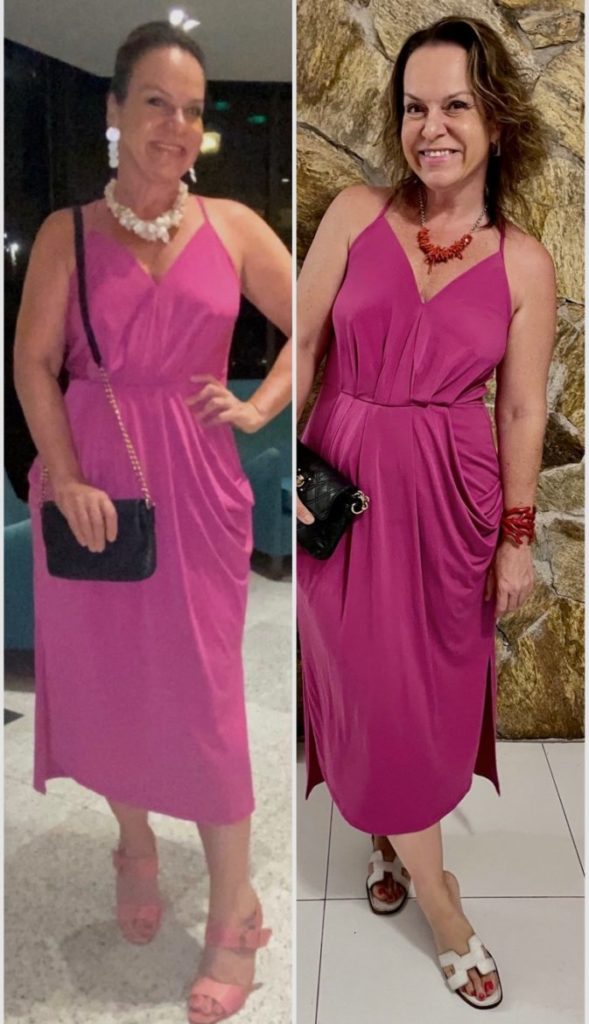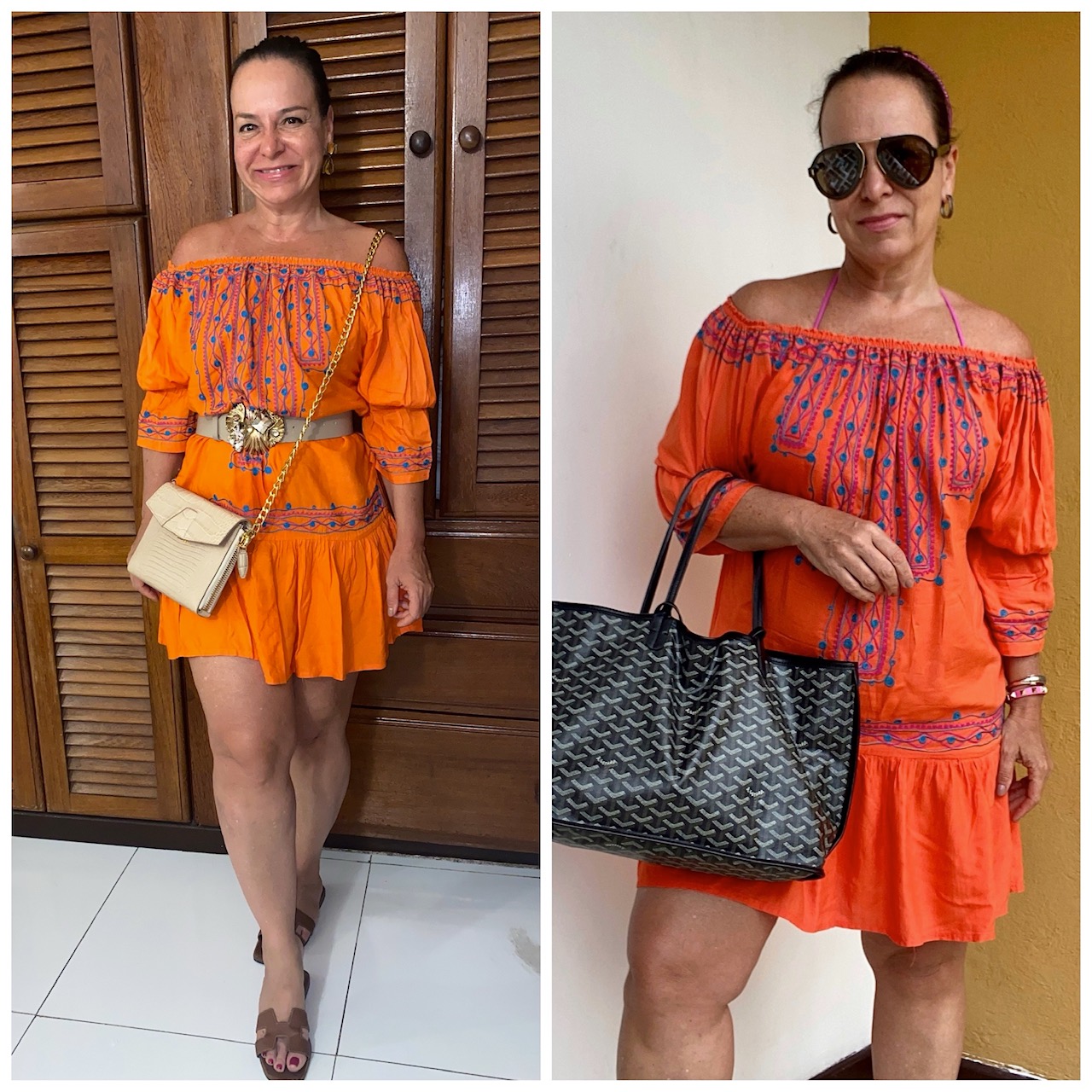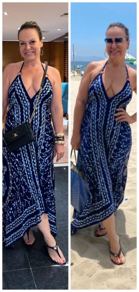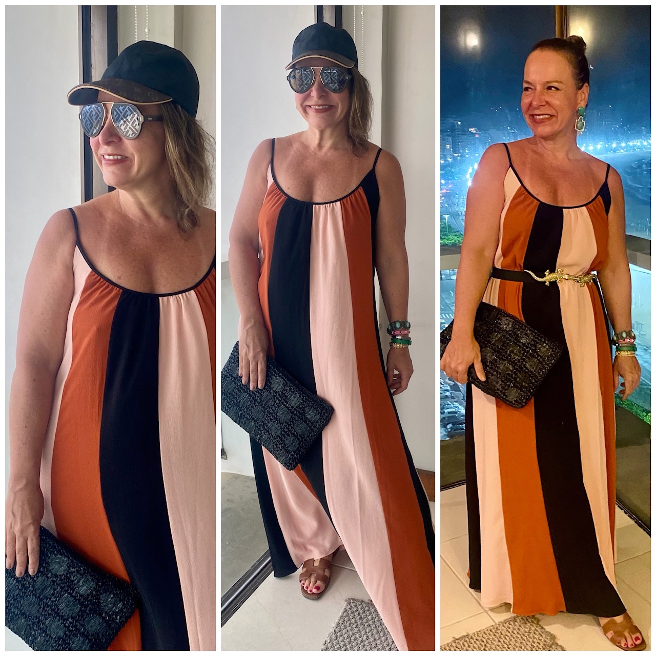 Ainda deu para levar até mesmo 2 vestidos bem lindos que usei uma vez só. Ah! E sempre levo uma peça nova: o vestido tricolor abaixo é da ÁGORA STORE e a loja está em plena liquidação de verão.