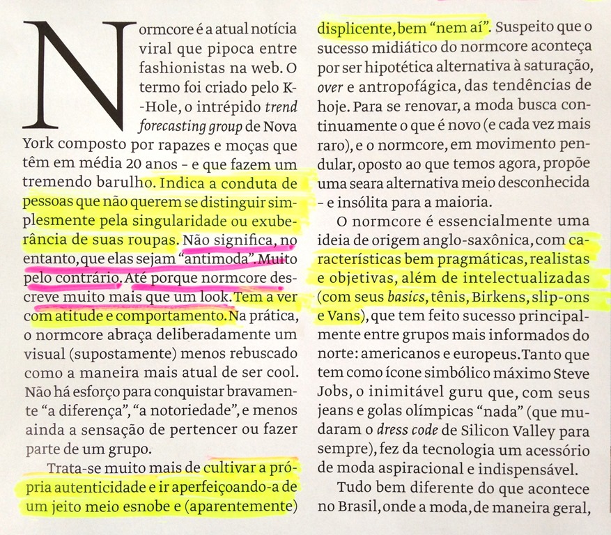 Mais uma reflexão sobre o NORMCORE via VOGUE BRASIL – sobre esse desejo de parecer cool e “ nem aí “ … Conforto acima de tudo, poucas cores e formas, e pé no chão sempre!