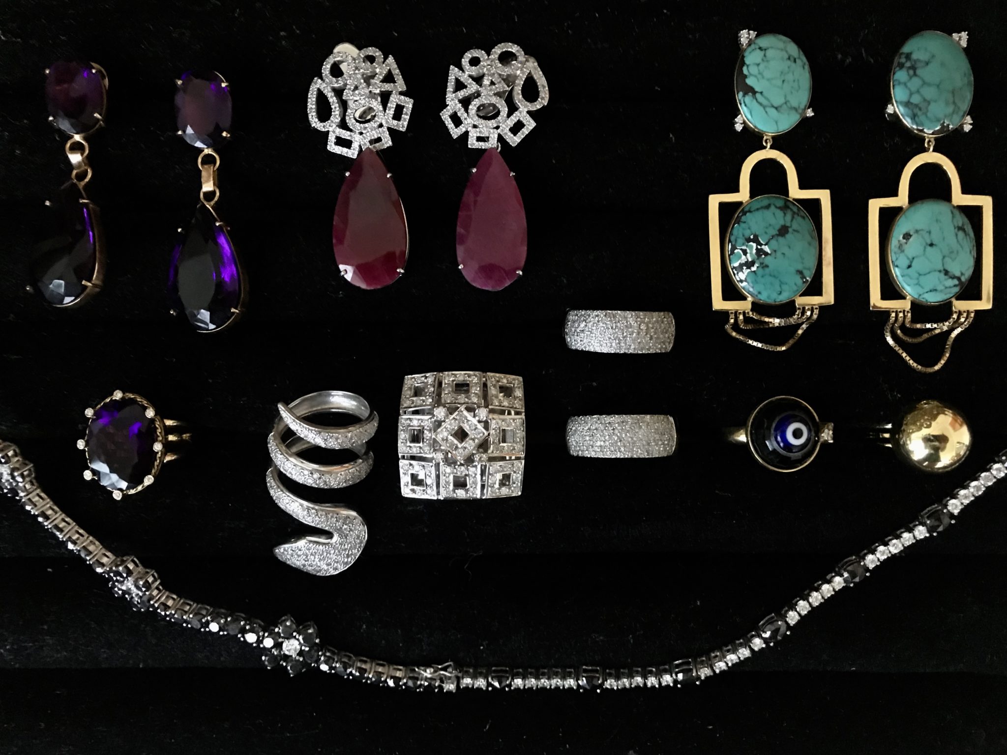 De joias, uma argola de brilhantes ( peça boa e versátil ) e 2 anéis. Somente!