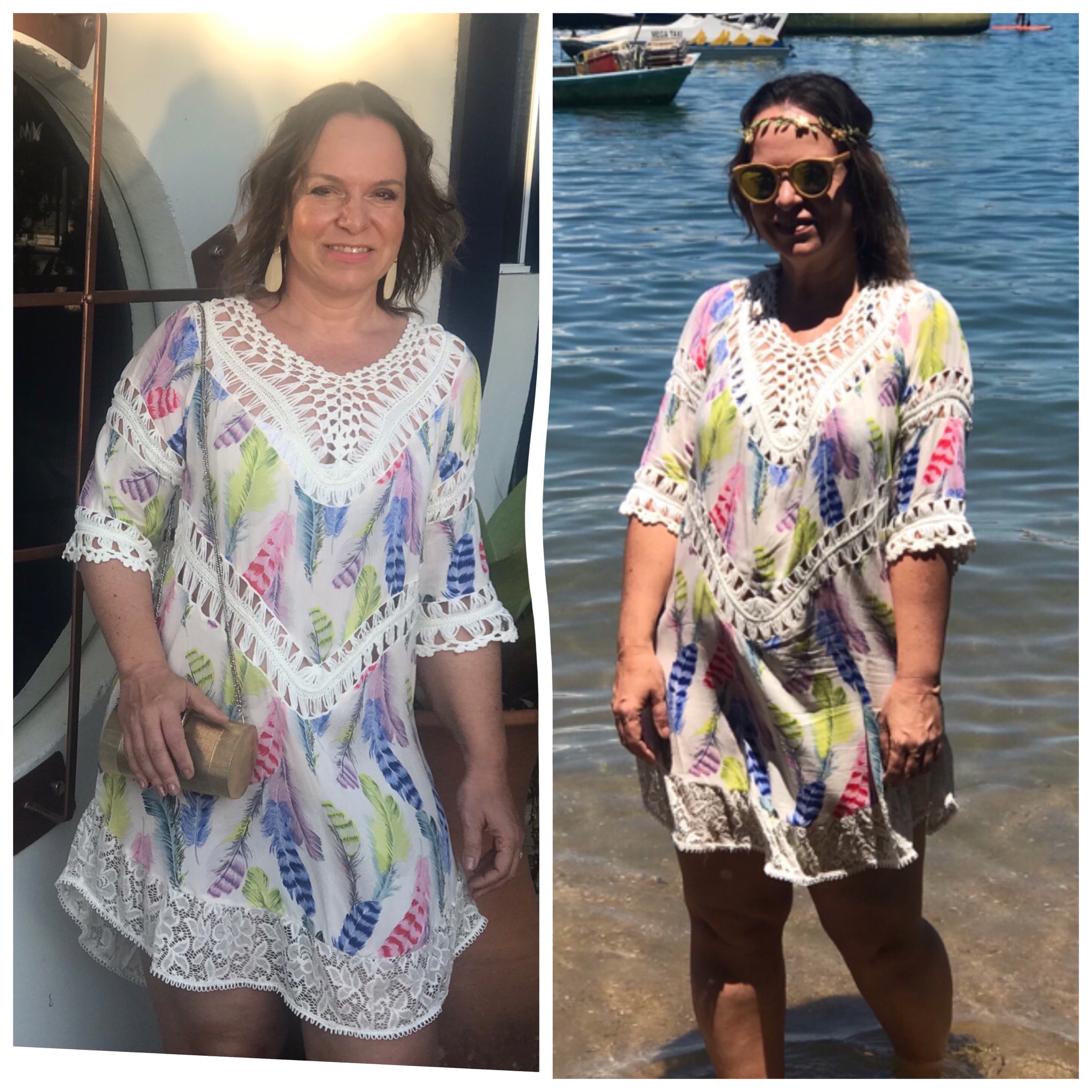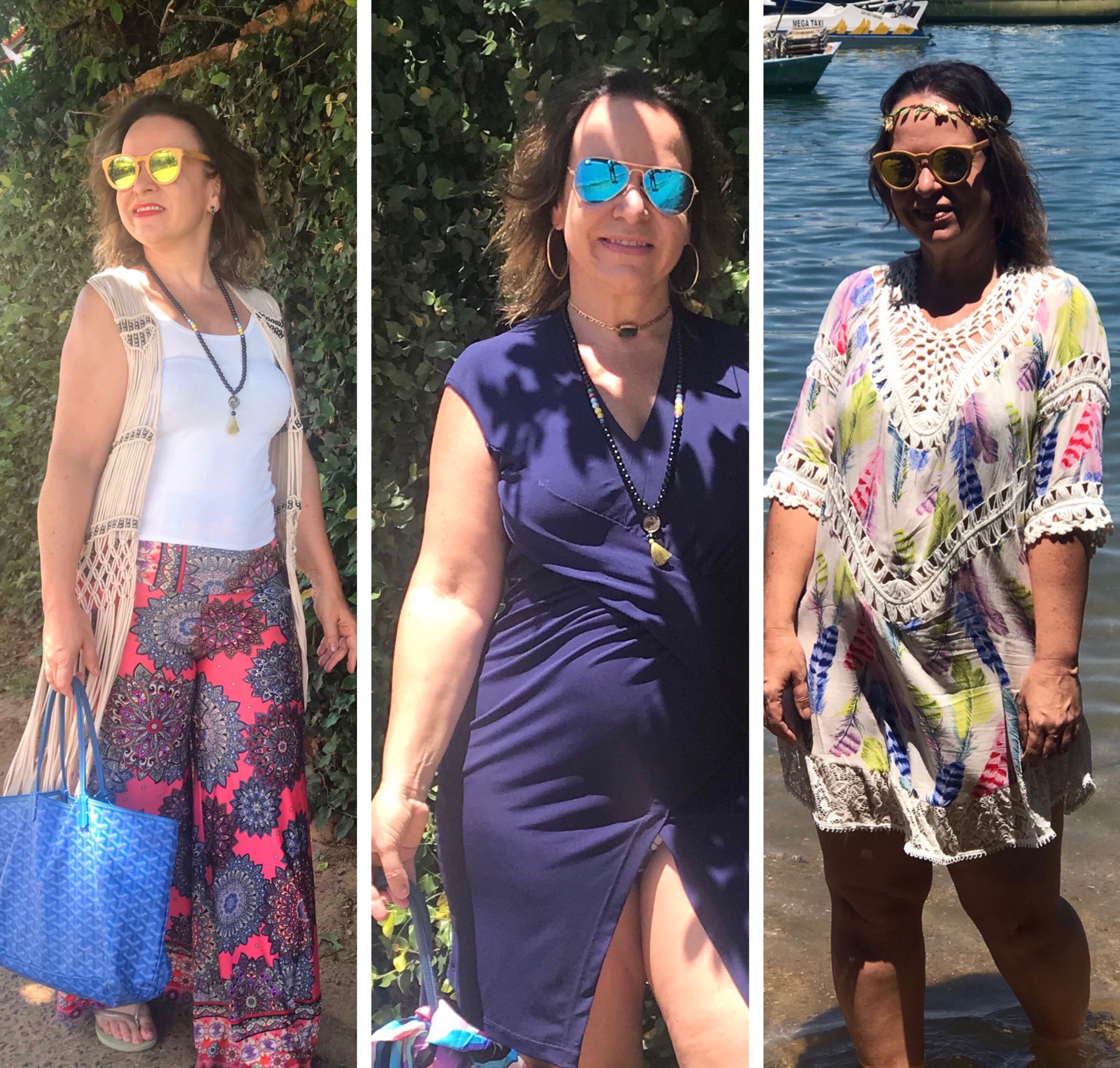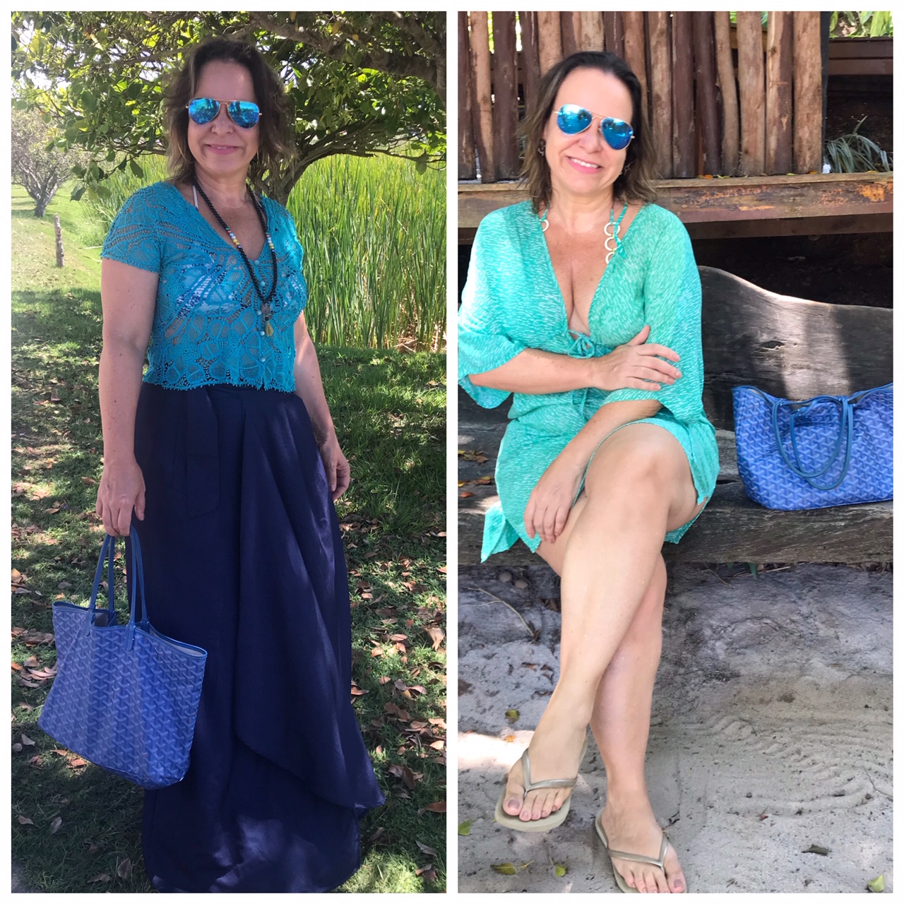 O look da esquerda para um fim-de-tarde/noite no INSÓLITO e o outro na praia, com biquini debaixo.