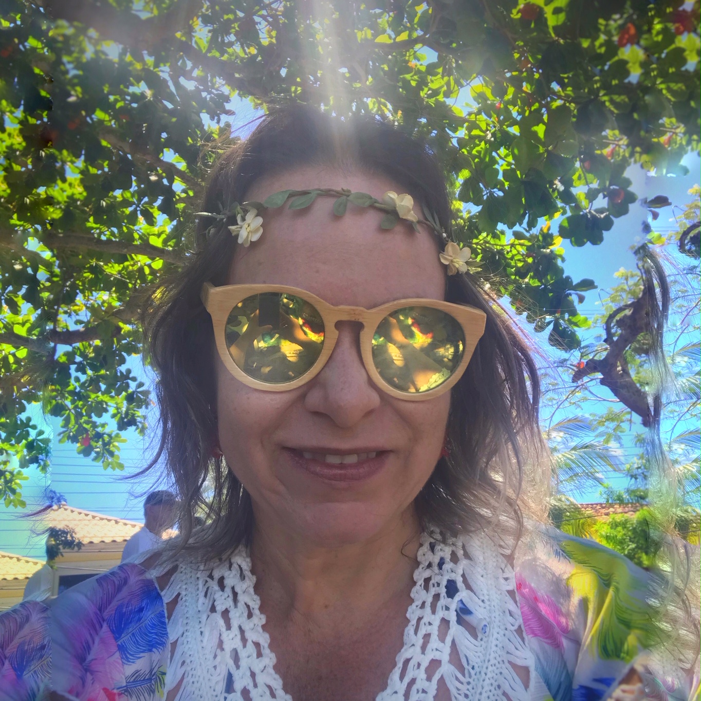 Usei a tiarinha de flores em outro dia na praia. E ainda mais flores no brinco JOIAS PD.