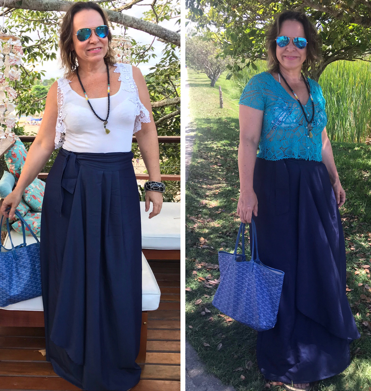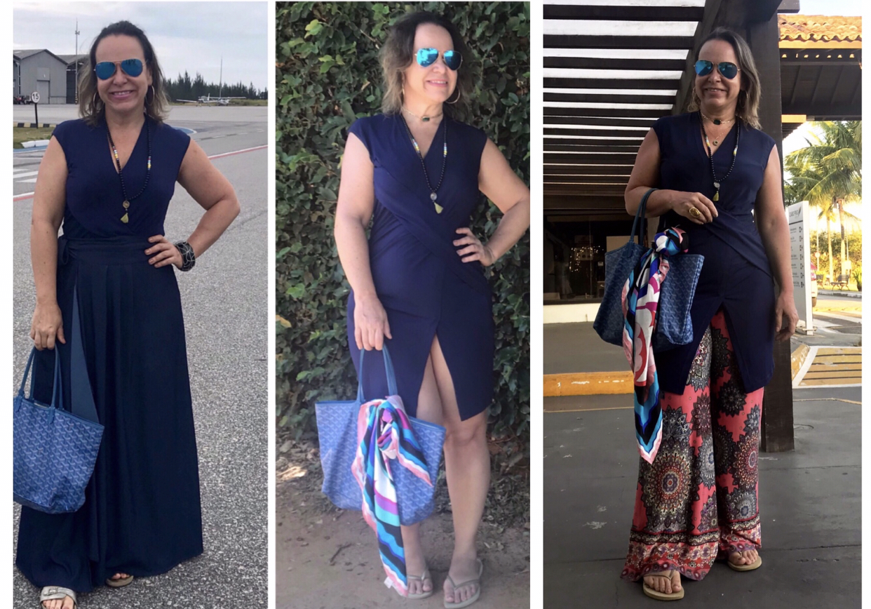 Esse foi o meu aerolook e depois fui re-utilzando cada uma das peças separadamente. A mesma blusa eu usei de 3 maneiras diferentes, inclusive, como saída de praia.