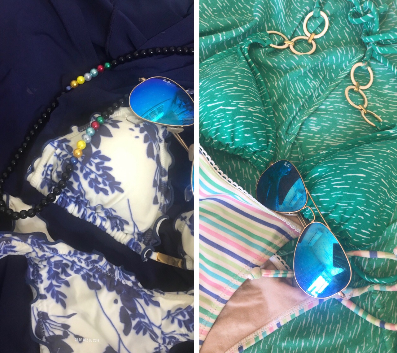 Levei apenas 3 biquinis e um top a mais, pois adoro descoordená-los e usar as peças separadamente.