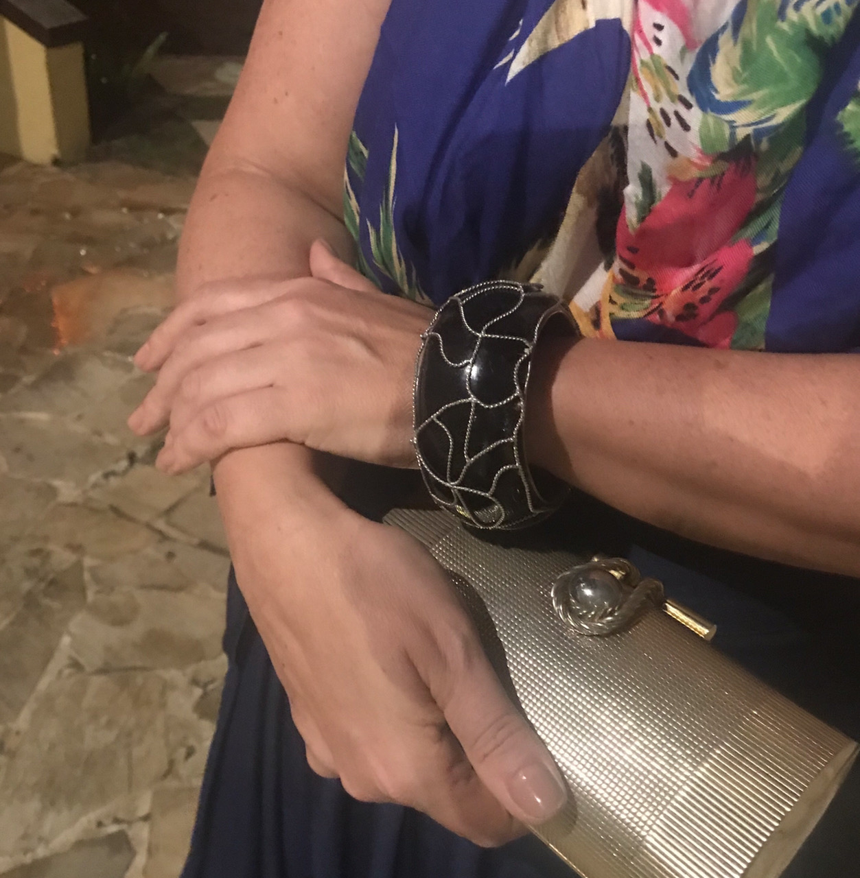 Não só a canga virou blusa, como também a bolsa de festa super tradicional virou “bolsinha de praia” … Rsrs