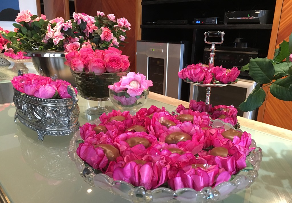 Partindo dessa inspiração abaixo, pensei em fazer para ela uma mesa de doces como se fosse um jardim de rosas pink.