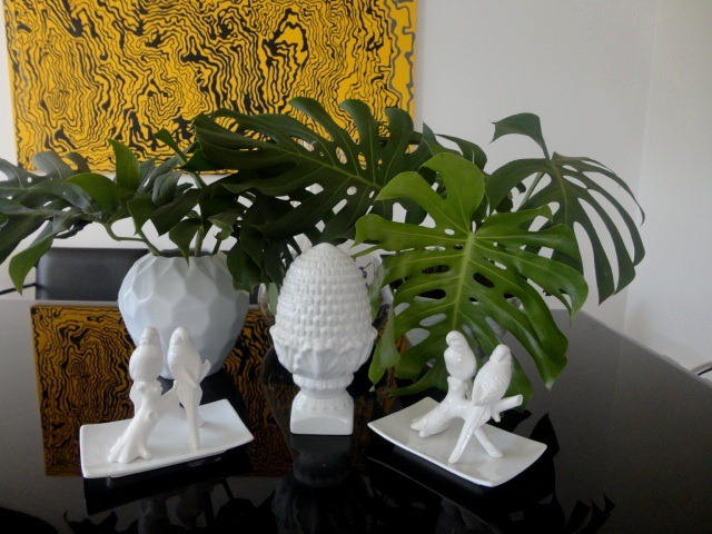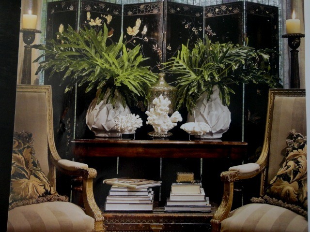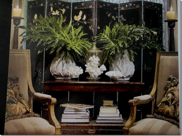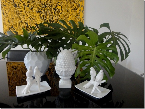 A idéia da vez para mesa foi dessas folhagens com branco, pois a comida linda do Hidemi precisava brilhar sem nenhuma concorrência com flores. Foto-inspiração da Vogue Casa….