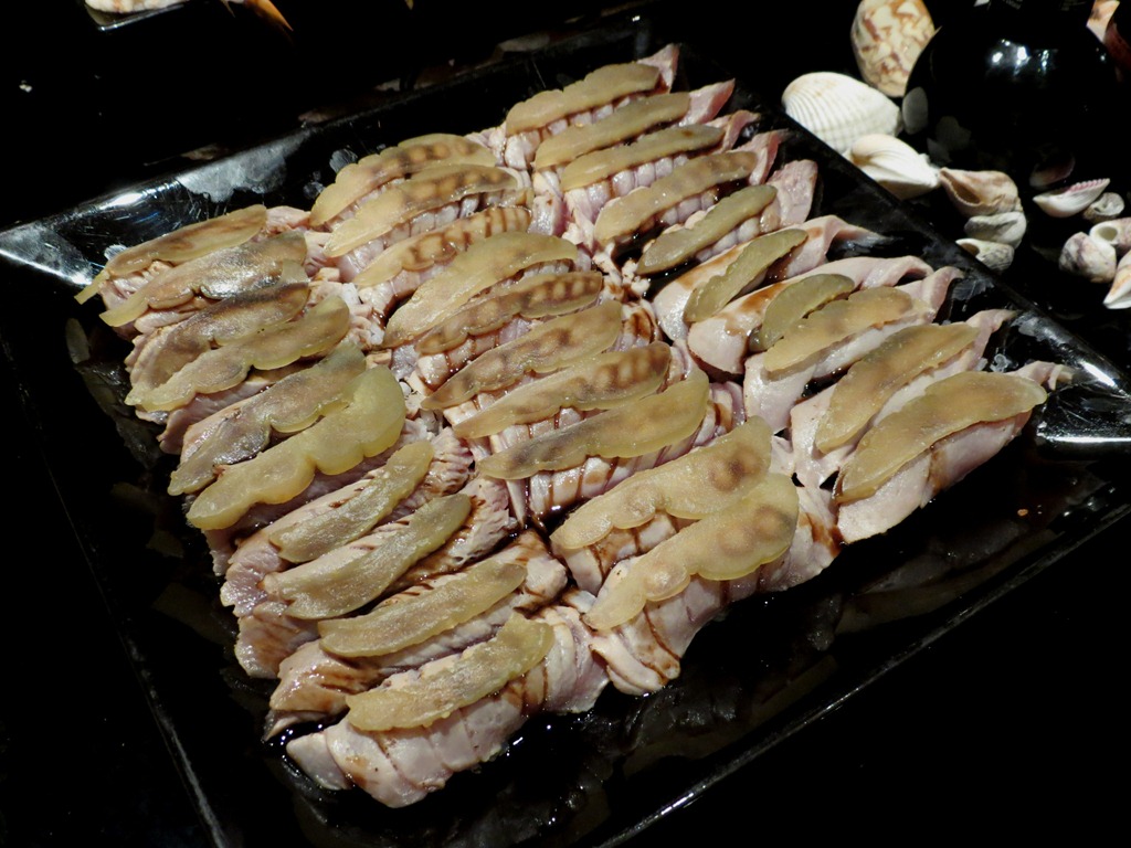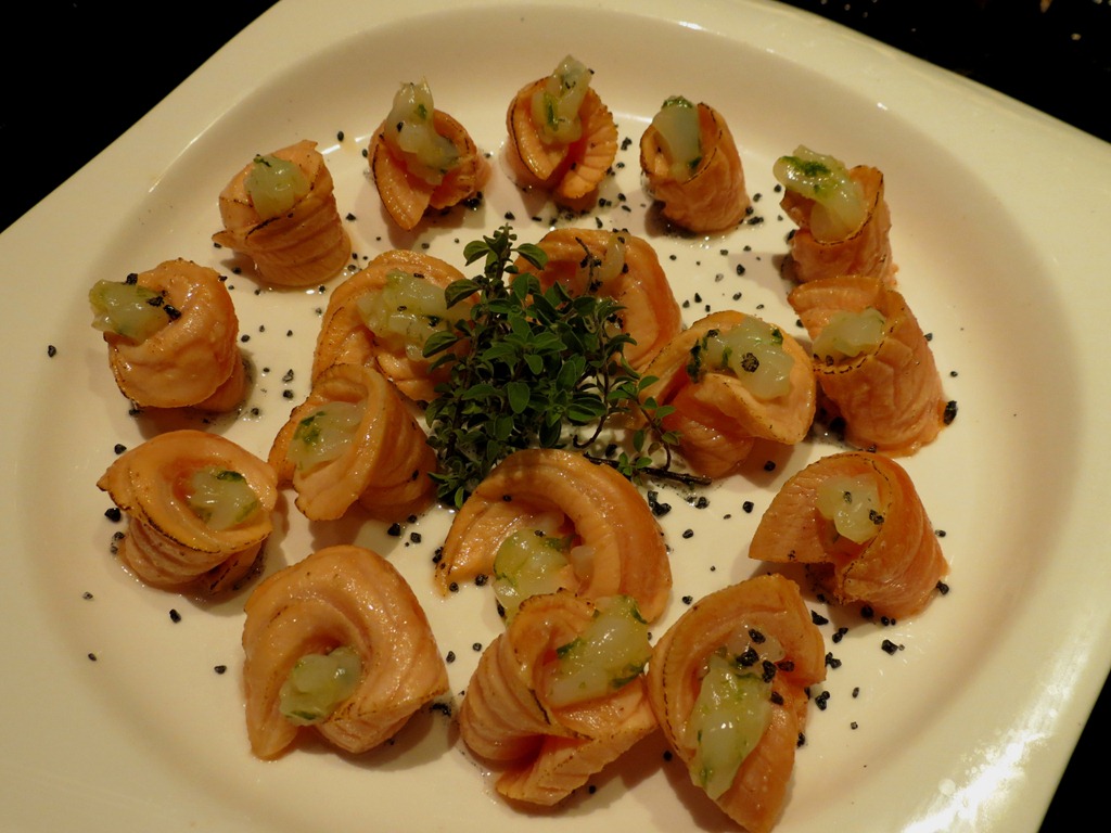 Pratos – novidade que ele apresentou na noite: trufados, com lula em conserva, um luxo!