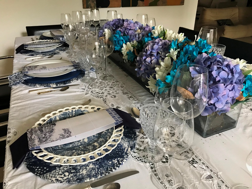 Quis montar uma mesa toda em tons de azul aproveitando a disponibilidade das flores da Holambelo. Acompanhe o passo-a-passo da montagem.