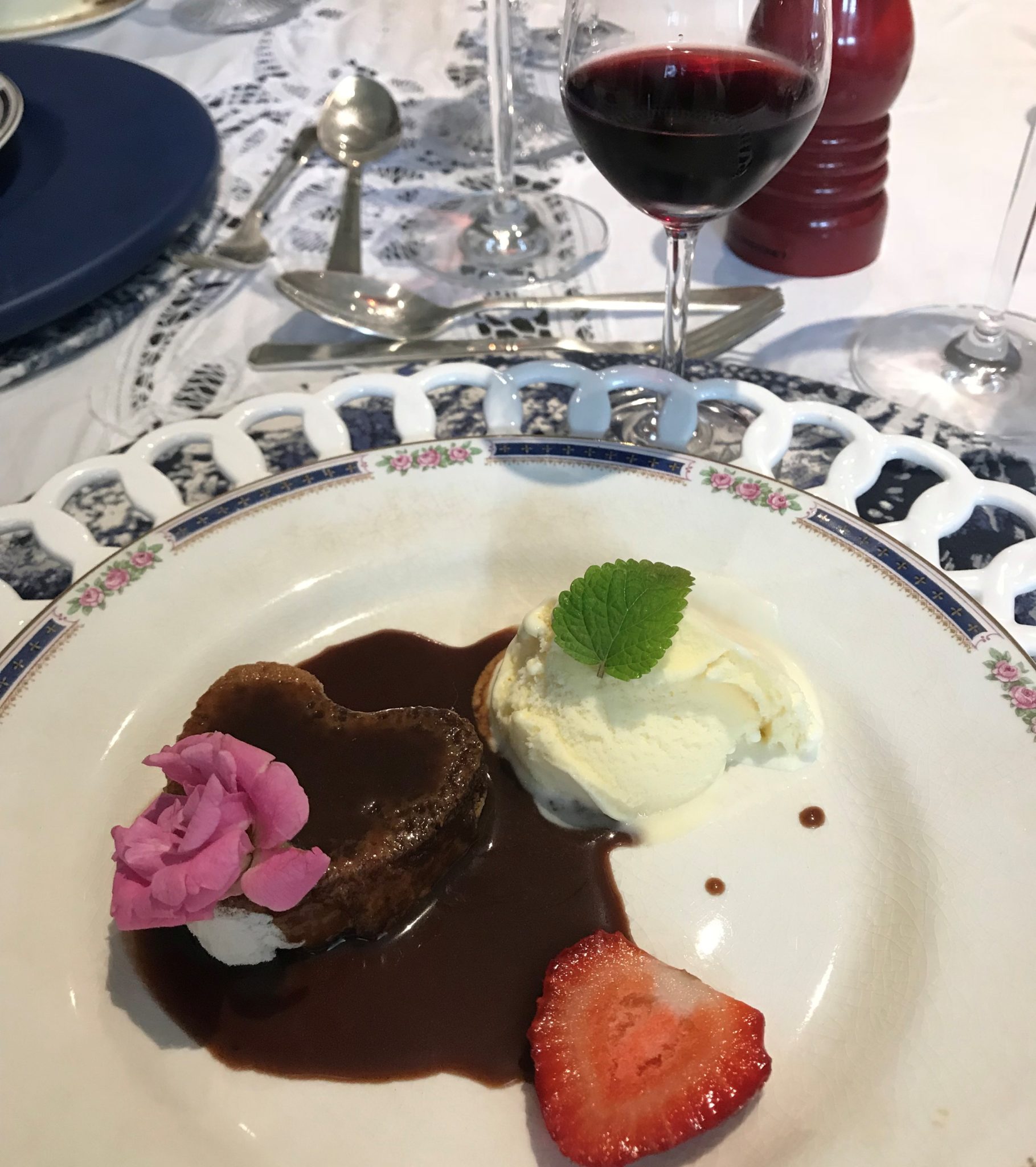 Servi esse mini-bolo em formato de coração + sorvete de creme + calda. A receita do bolo está AQUI . A fofurice foi assá-lo nas forminhas de coração. Vinho do Porto sempre harmoniza com sobremesas de chocolate.