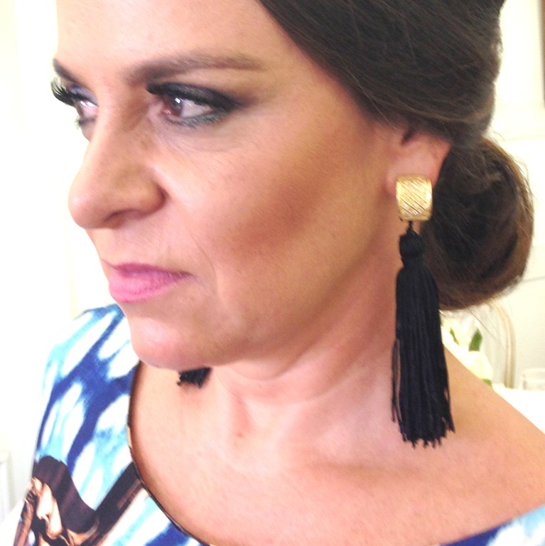 Que jóia usar? Em lançamentos, eu não gosto de usar jóias com muita informação, e dessa vez, eu queria estar com a cara da FLECHE D’OR. Vendo o catálogo deles, vi que em vários looks , a modelo usou um tassel de seda como franja, coisa que eu já gosto  de adaptar nos meus brincos há algum tempinho.