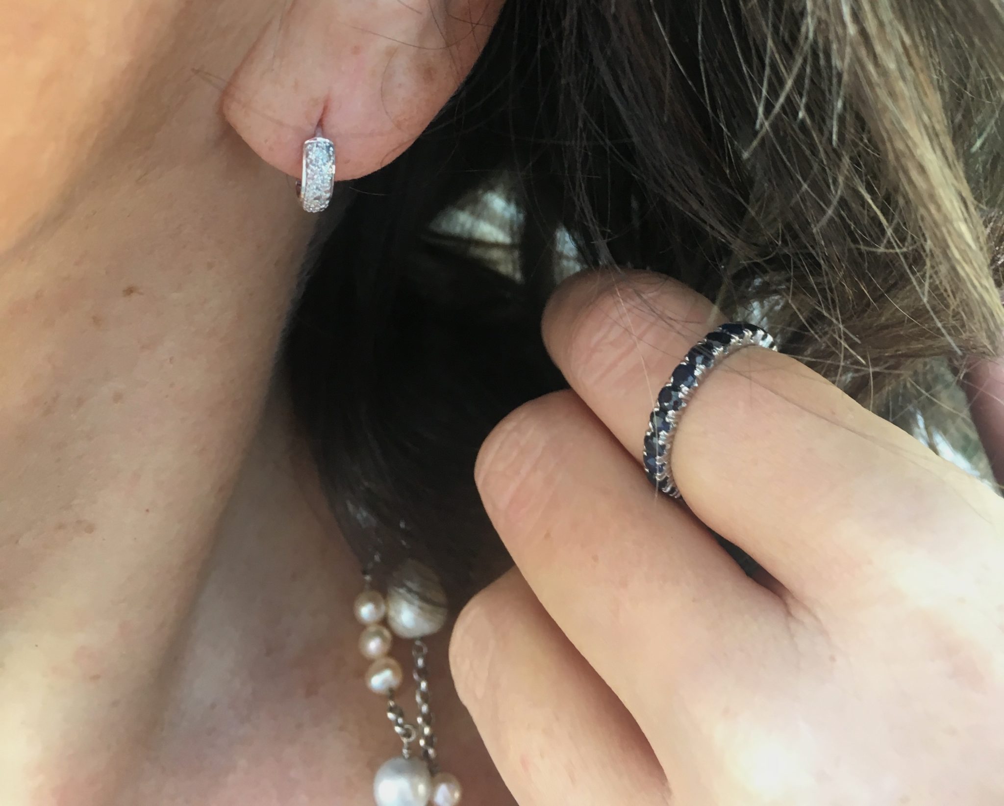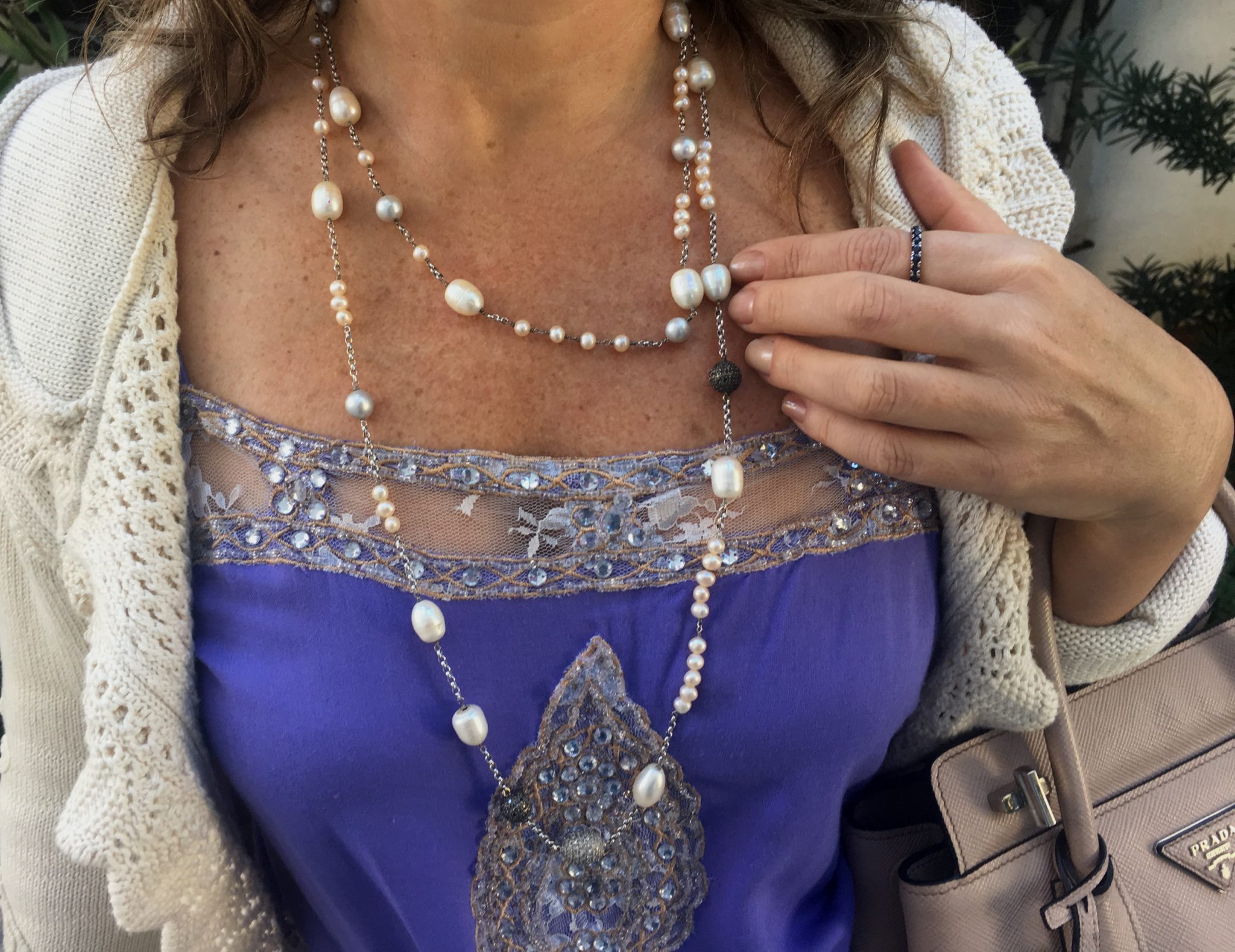 Eu não vivo sem joias, vocês já sabem. Mas faço questão absoluta de que sejam sempre adequadas. Um fio longo de pérolas cantou no look ( ficou tudo meio “Chanel inspired”! ) . Além dele, uma aliança de safiras usada no indicador e uma micro-argolinha de brilhantes. Gosto de coisinhas delicadas no meio das outras. E vocês? Acho feminino!