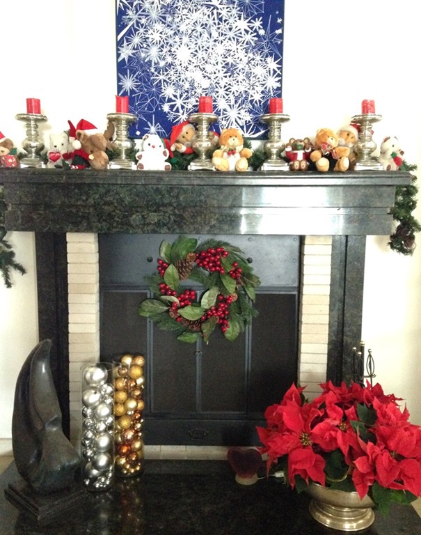O resultado disso tudo? Minha lareira nesse ano é meu doce de coco ! Montei não só com ursinhos de Natal, como também com flores naturais, bolas e guirlandas. Além disso, ainda acendi um coração, para que aqui esteja o verdadeiro sentido do Natal: o amor de Deus para conosco. Esse amor eu quero que dure não só nas festas, mas também no ano que está entrando!