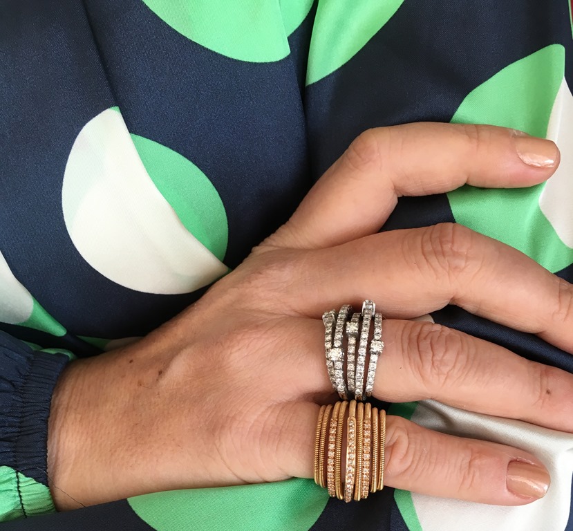 Além disso, usei, propositalmente , 2 anéis que tinham a mesma linguagem, porém tons de ouro diferentes.