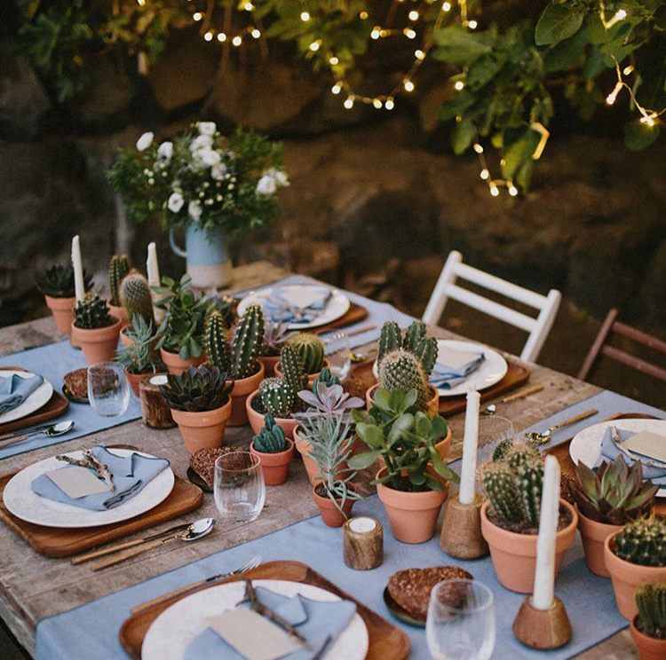 Eu gosto muito de partir de alguma inspiração que tenha agradado meus olhos de alguma maneira. Essa veio do ig RECEBER COM CHARME .Eu amei os vasinhos de cactos e suculentas no meio de velas. Louça branca e taças transparentes. Coisa simples que todo mundo tem em casa e que produz lindo efeito final.