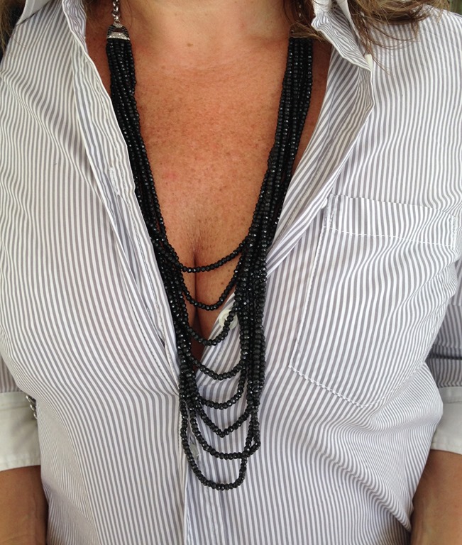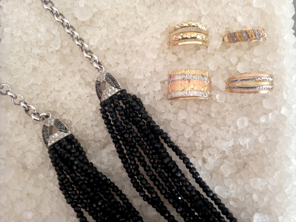 colar de espinélios, ouro branco e brilhantes negros e brancos—- 10 x 700,00= 7000,00