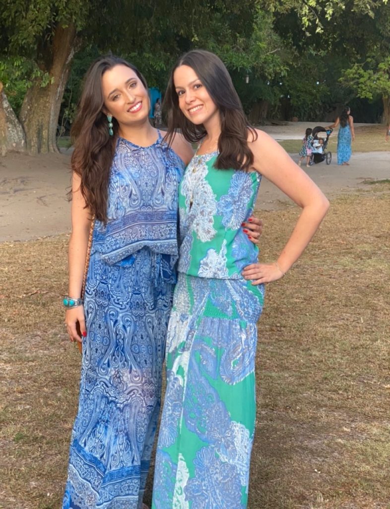 Fique atenta também à onipresente bolsa de palha. Rafa levou uma de cor natural e eu levei uma preta.